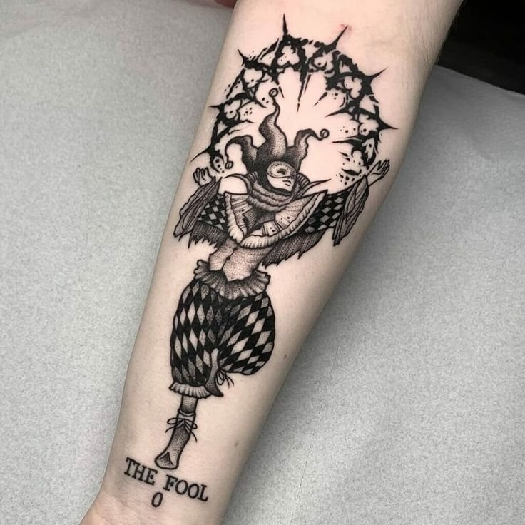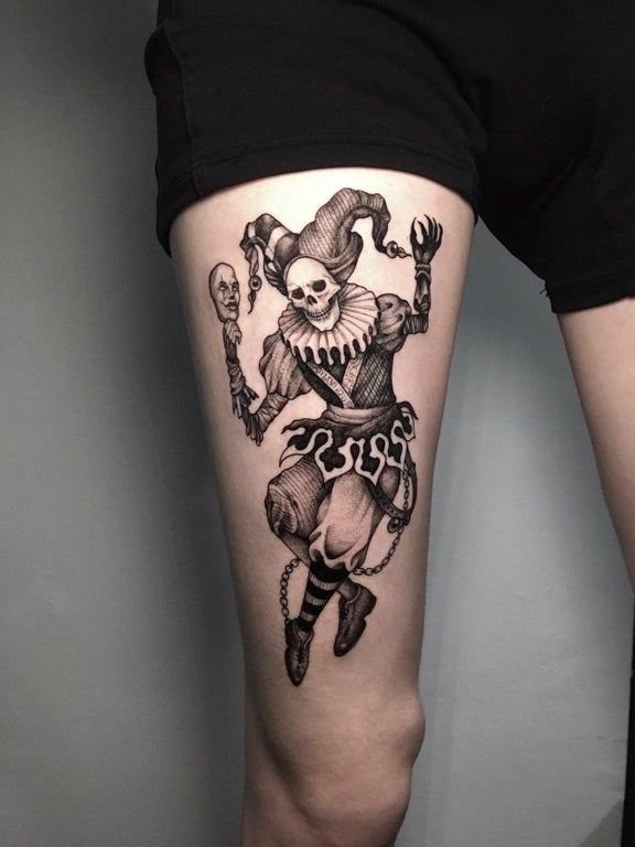 - Так же, тату шута подчеркивает прозорливость человека. Человек с татуировкой шута нередко может выступать в роли обманчивой, скрытной, хитрой личности.