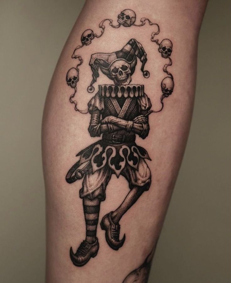 Шут одинаково эффектно будет смотреться в стиле реализм, акварель, трэш-полька, графика, биомеханика, олд-скул, нью-скул и так далее.