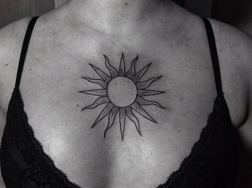 Расположение татуировки солнца может придавать ей дополнительные оттенки значения.