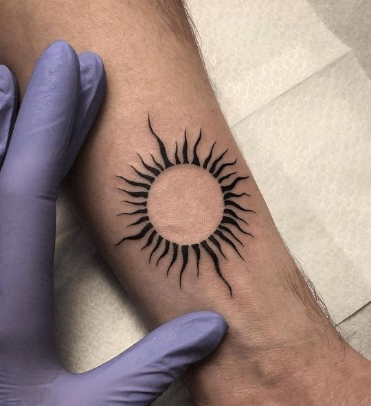 Татуировка солнца – это мощный и универсальный знак, значение которого, олицетворяющий свет, тепло и возрождение.