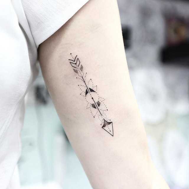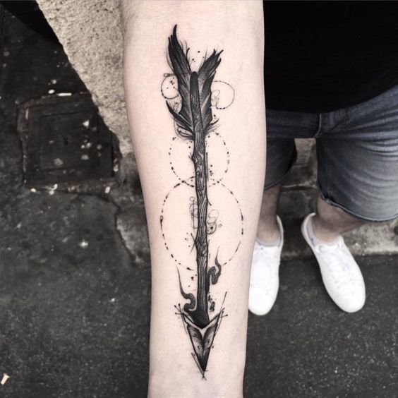 Для сильного пола стрела характеризует такие черты характера как хладнокровие, меткость и самоконтроль. Тату, как правило, выполняются в темных тонах. Предпочитаемые места для нанесения тату это предплечье, нога, либо запястье.