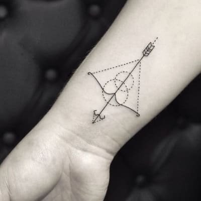 - Часто стрелу изображают в качестве оберега, защищающего обладателя тату от злых сил и наговоров.