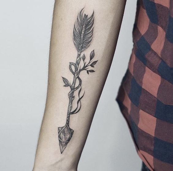 - Тату наконечника стрелы обозначает привязанность к истории коренных американцев.