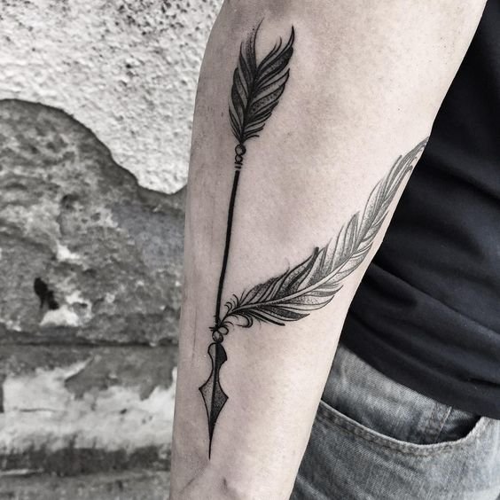 Тату с изображением стрелы, как правило, относят к мужским татуировкам.