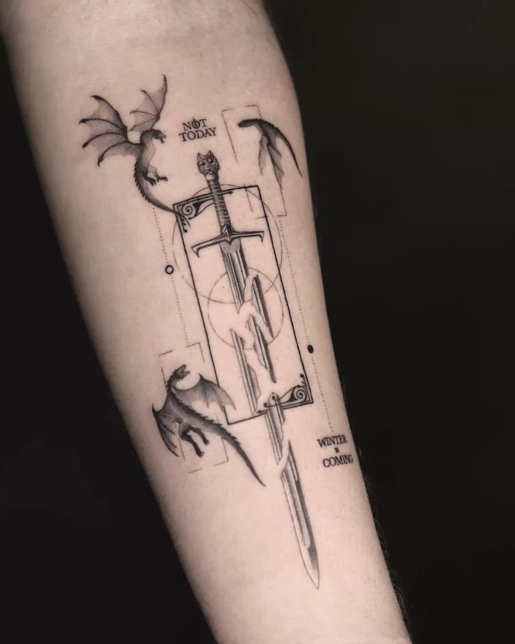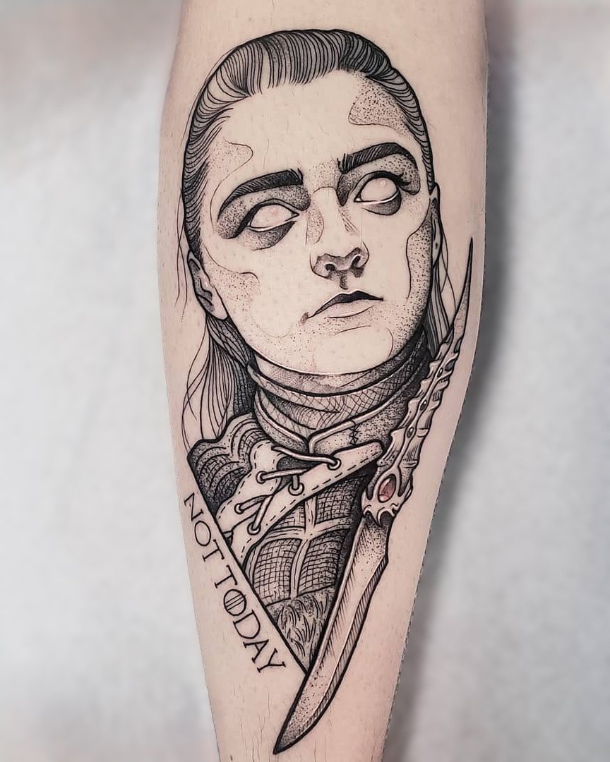 Например, татуировка с Арьей Старк станет отличным образом для тех, кто ценит стойкость, смелость и способность выжить даже в самых сложных ситуациях.