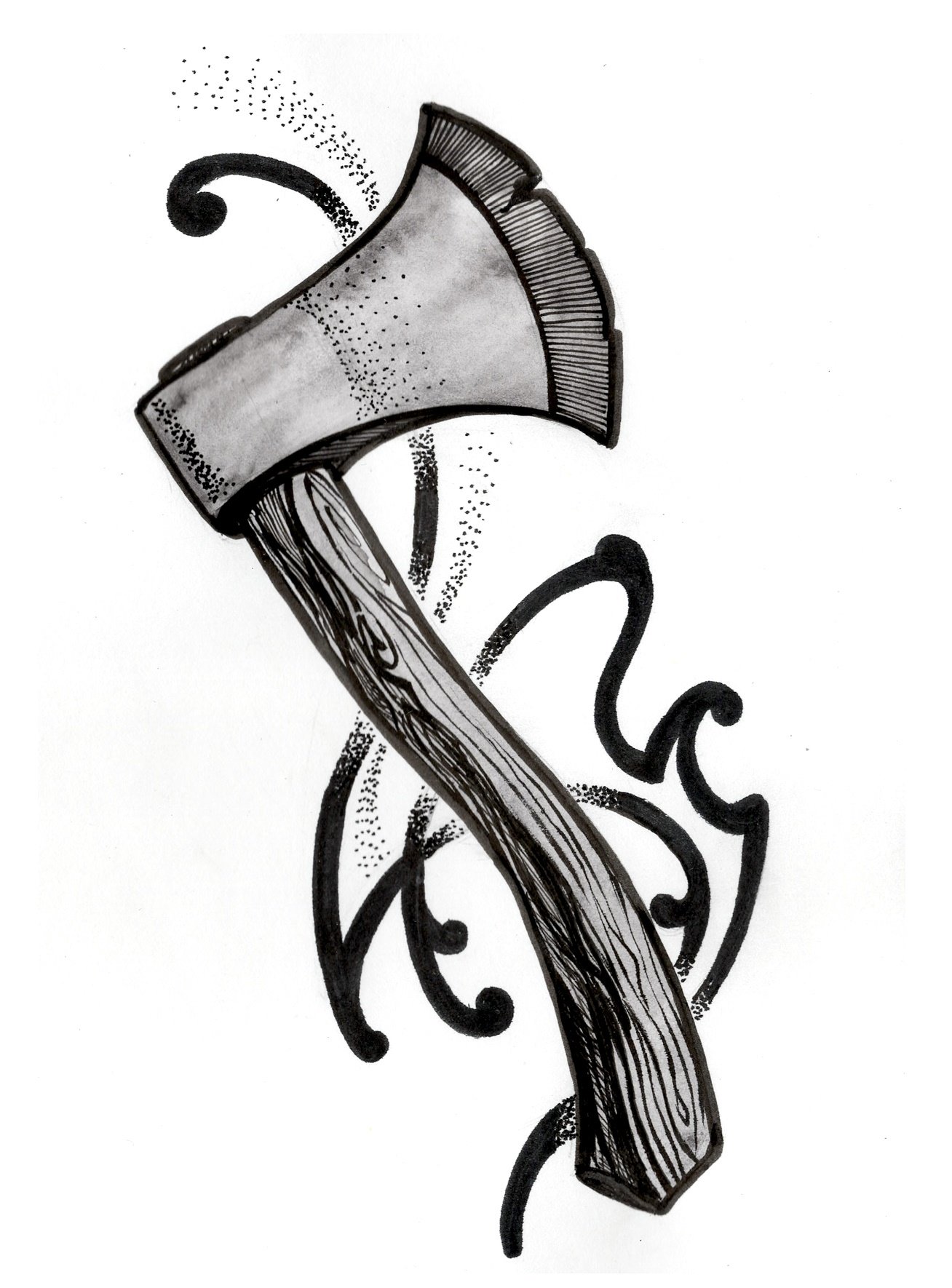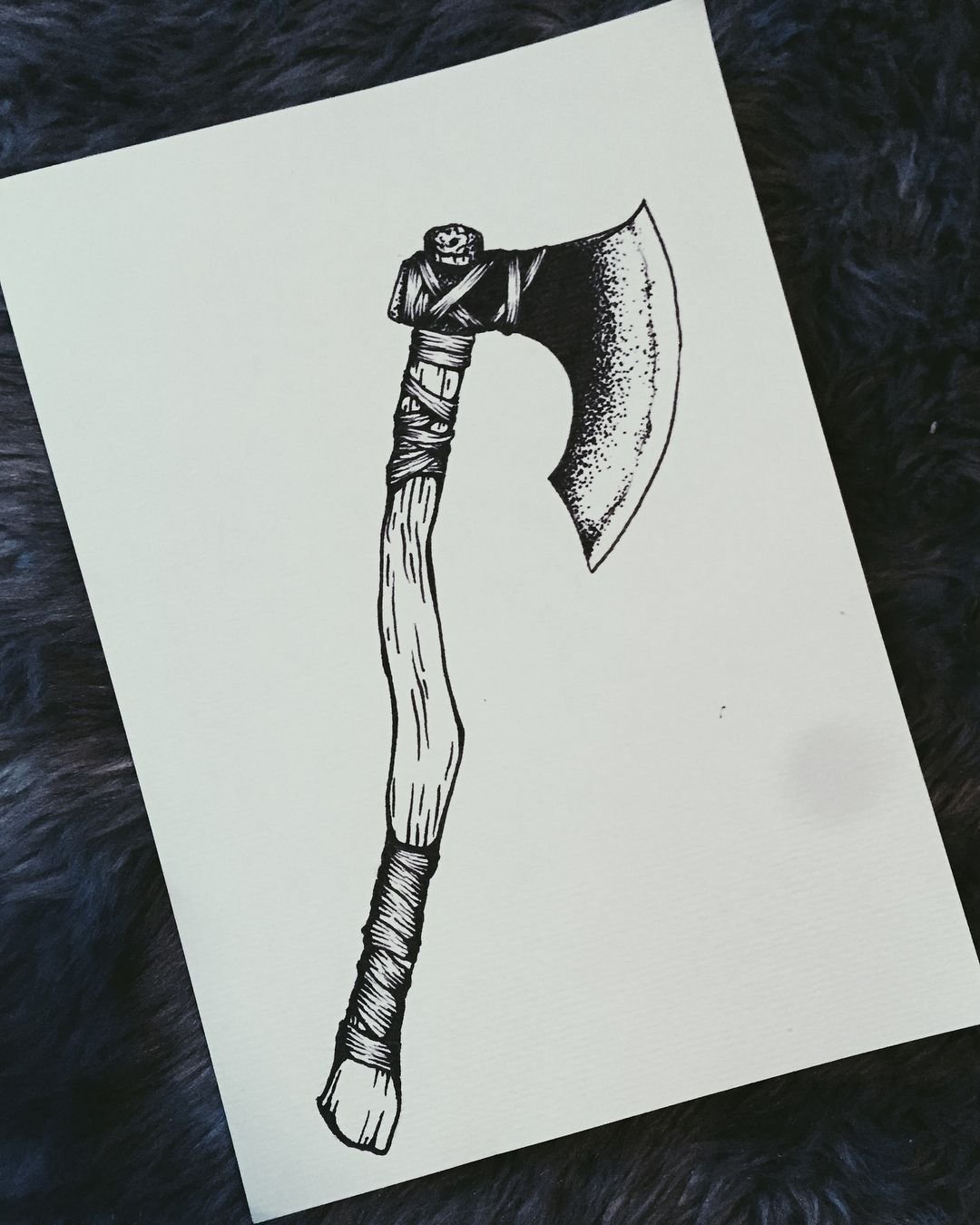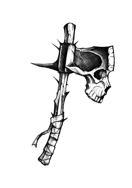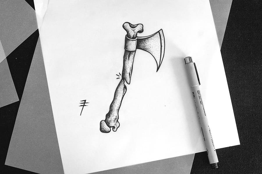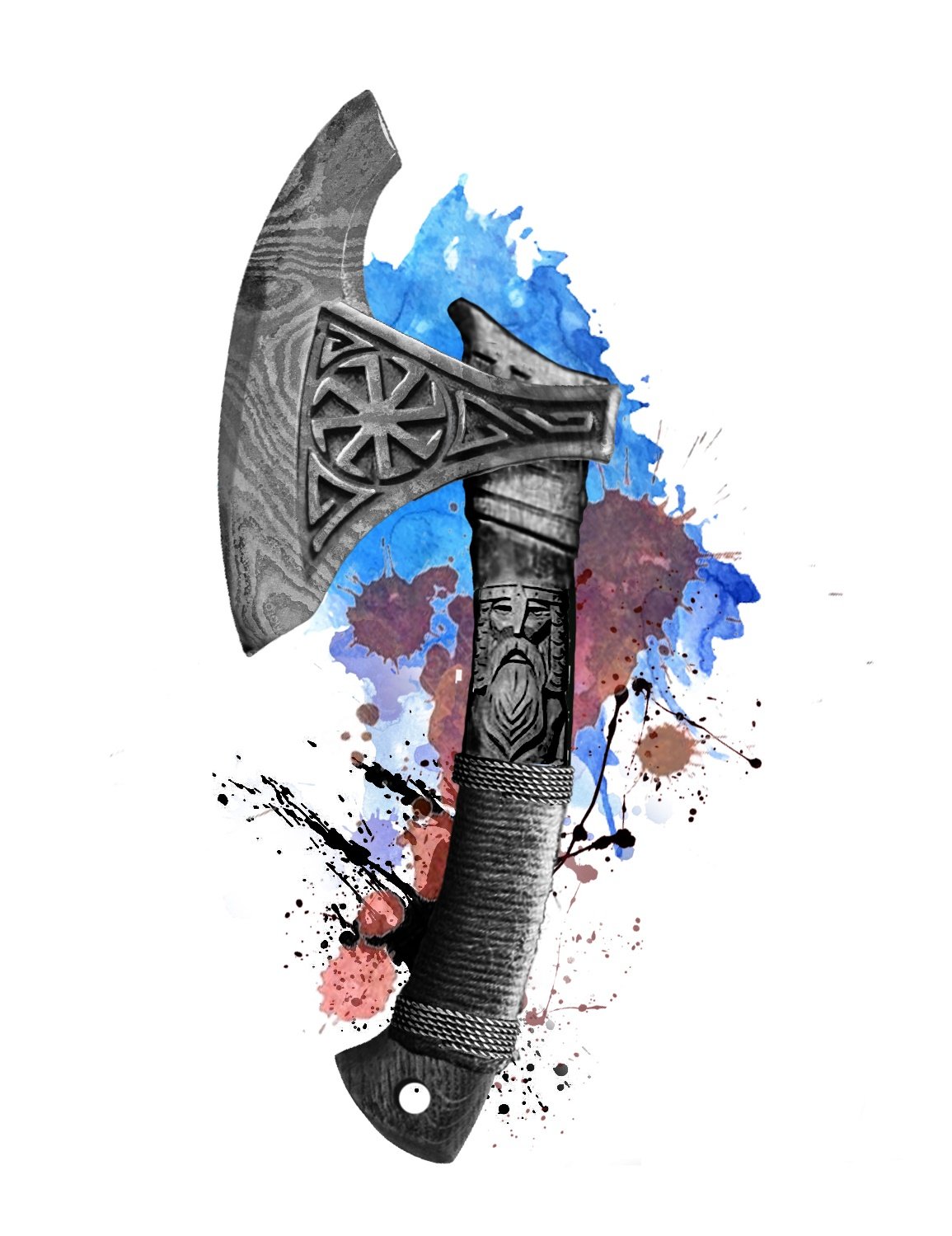 - Эскиз топора с парным количеством лезвий, либо тату с двумя топорами считается мощным оберегом.