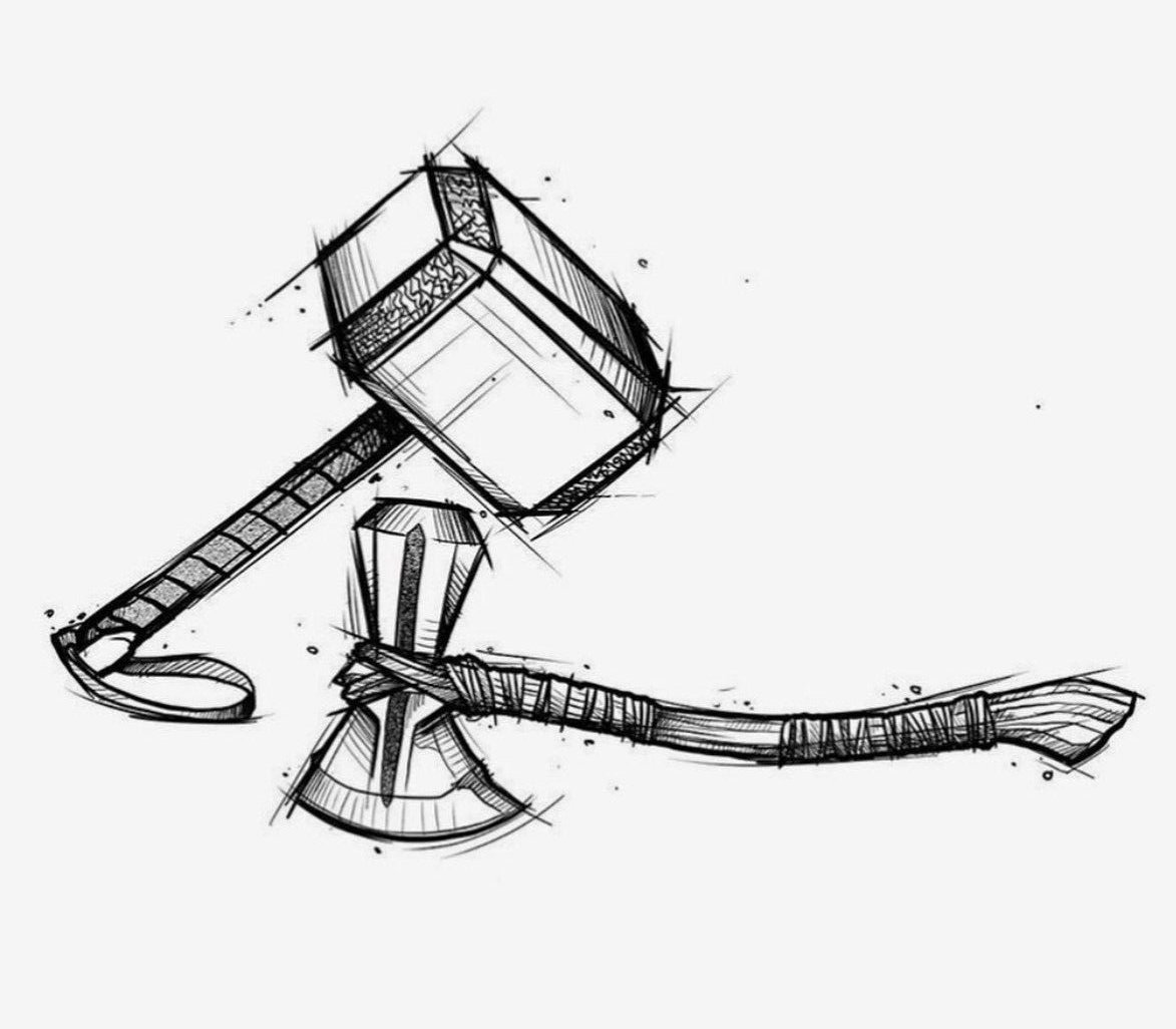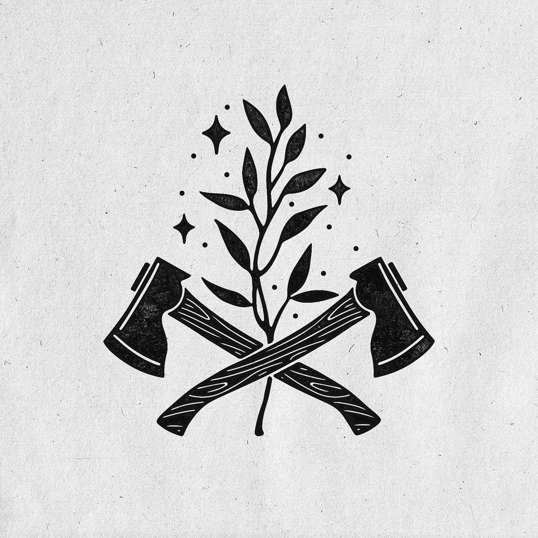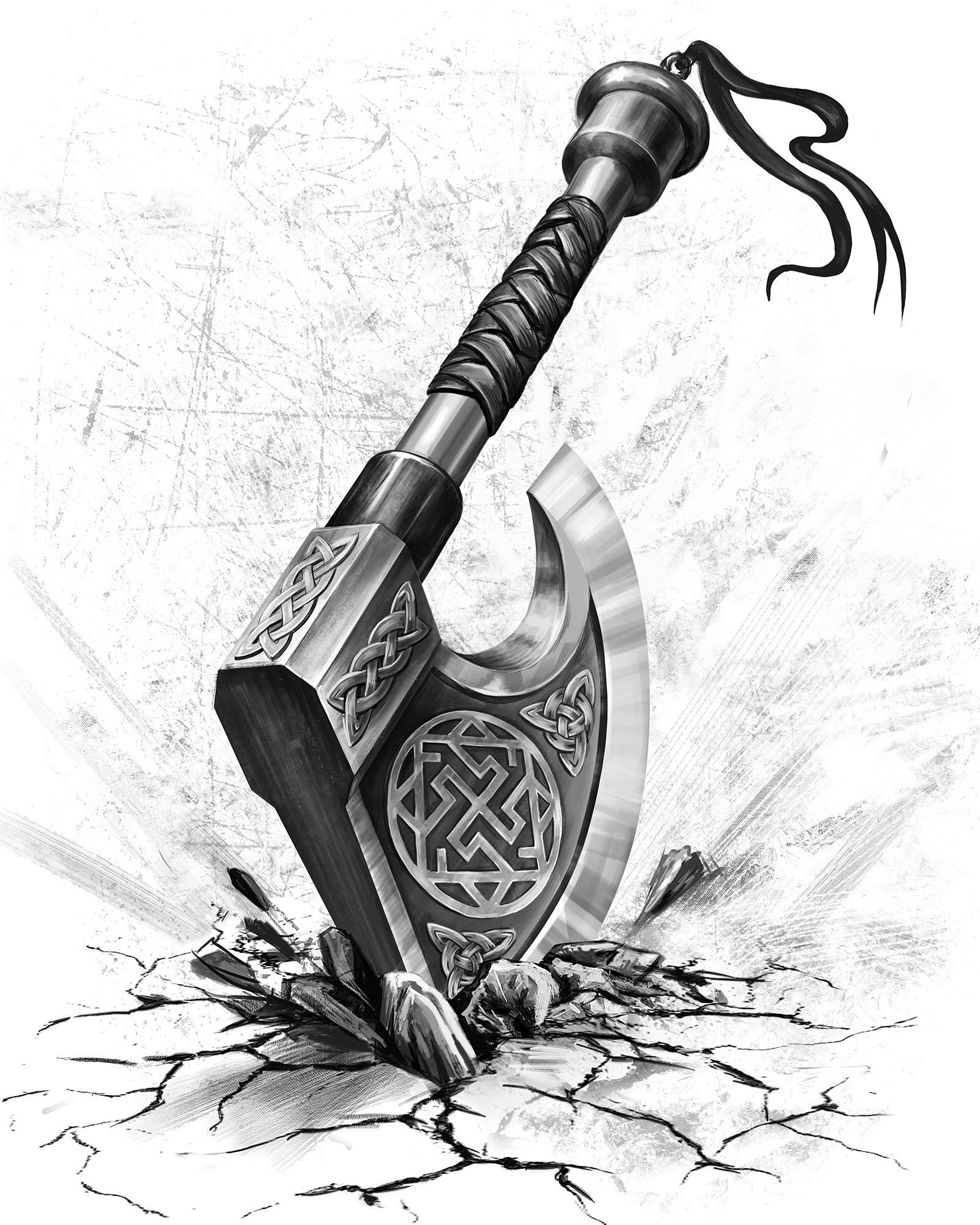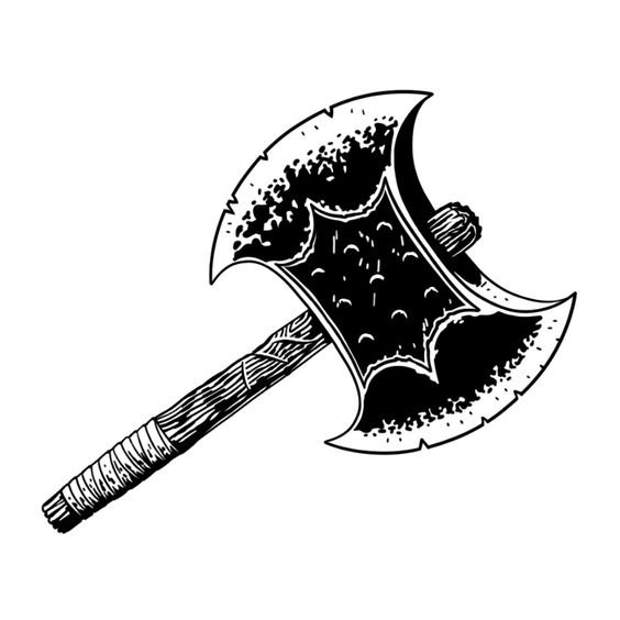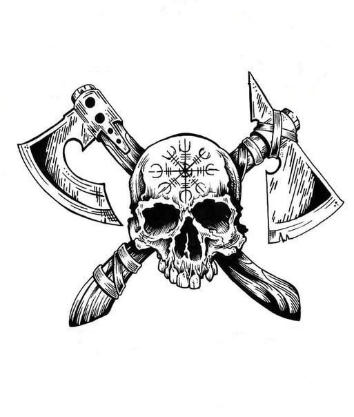 - Эскиз топора с парным количеством лезвий, либо тату с двумя топорами считается мощным оберегом.
