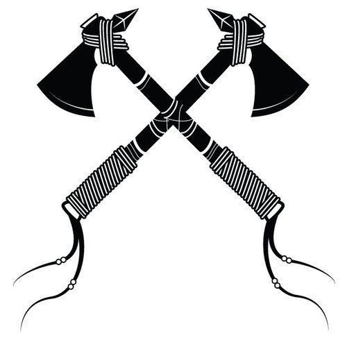 - Тату-эскиз двух топоров крест на крест, характеризует человека рассчитывающего на себя самого. Такие люди, как правило, не ожидают помощи, а всего добиваются своими силами. Они обладают хорошей силой воли, бесстрашны, однако могут узреть агрессивный настрой там, где его на самом деле нет. Такое изображение отлично смотрится на мужской груди, часто такое изображение дополняют головой животного, к примеру, медведя либо волка.