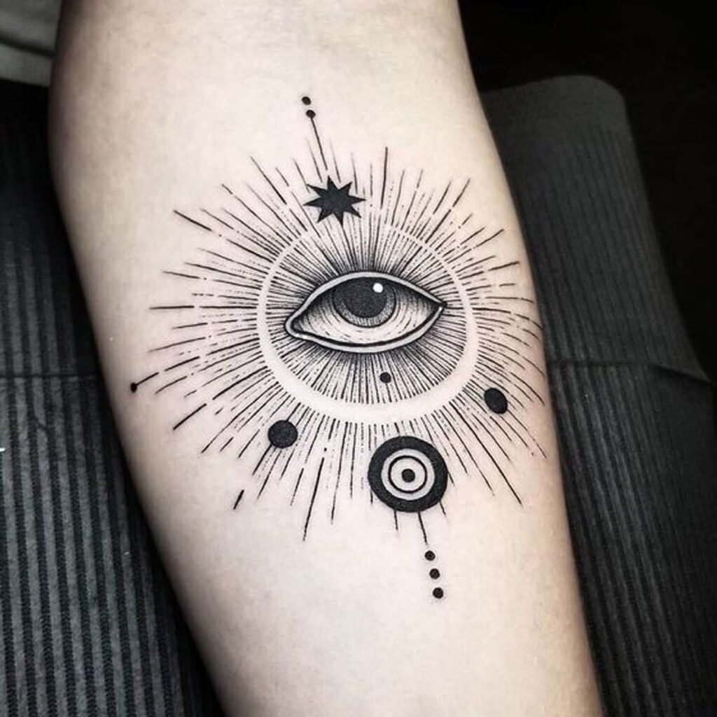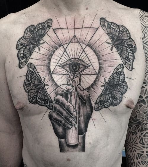 Данная татуировка особенно поможет раскрыть шестое чувство тому человеку, который не слушает мнение других, он освободился от предрассудков, ему все равно на то, что окружающие люде его осуждают. Потому как немалое количество людей не воспринимают эзотерику и относятся к данному учению с насмешкой, иногда даже с осуждением.