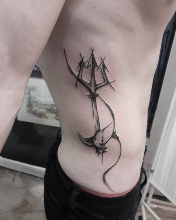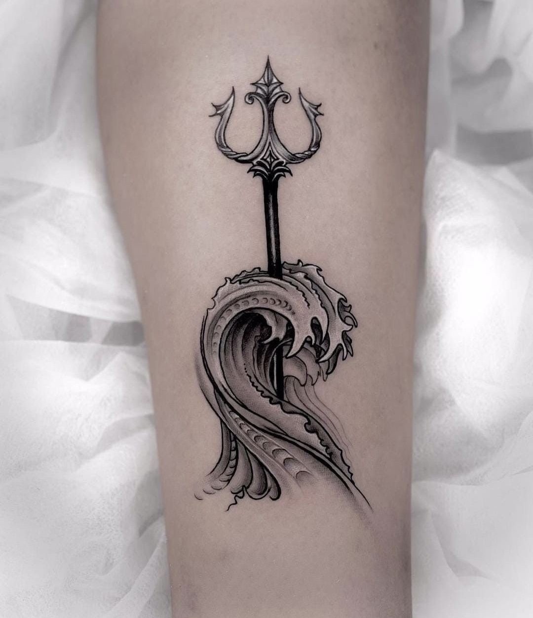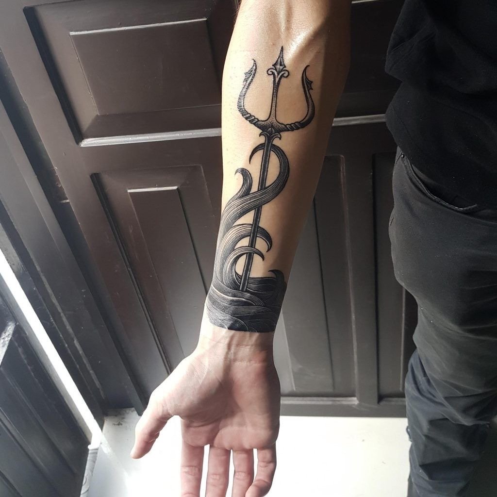Татуировка с изображением трезубца – это мощный сакральный символ, имеющий глубокие корни в истории и мифологии.