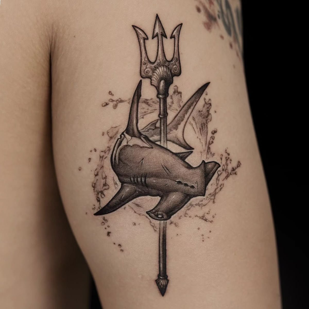 Реалистичный стиль передаёт чёткие детали и динамику, делая изображение насыщенным. Геометрический стиль подчёркивает баланс и симметрию. Дотворк создаёт эффект глубины, придавая рисунку мистическую атмосферу. Минимализм подойдёт для тех, кто предпочитает лаконичные и элегантные линии. Варианты с руническими элементами или сочетание тризуба с природными знаками делают татуировку уникальной.