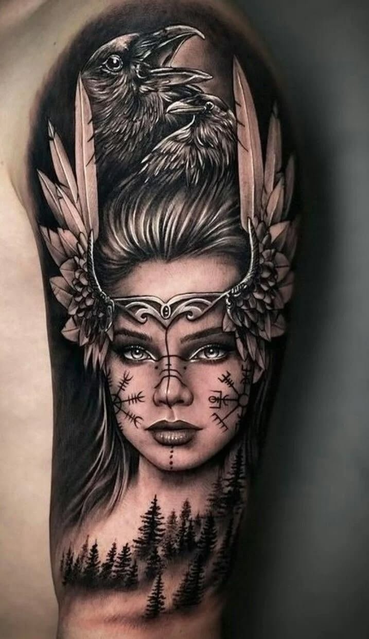 Для девушек изображение, связанное с Вальхаллой, может олицетворять внутреннюю силу, свободу и независимость.