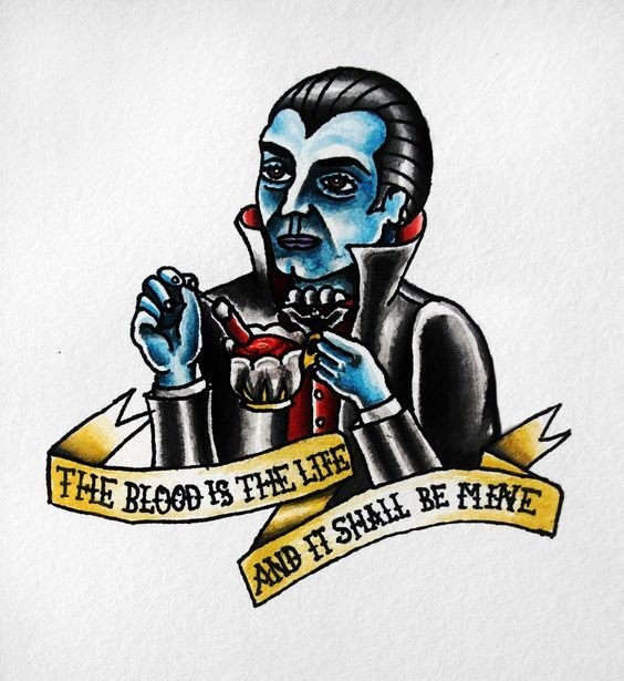 Другое значение – человек с таким тату живет за счет других. Так как главная идея вампира в том, что он питается кровью людей или животных, которая крайне необходима ему для здоровья и жизни в целом. Без красных телец вампир высыхает и превращается в пустой остов. В данном случае говорится о выживании за счет других людей, как в моральном, так и в физическом плане.