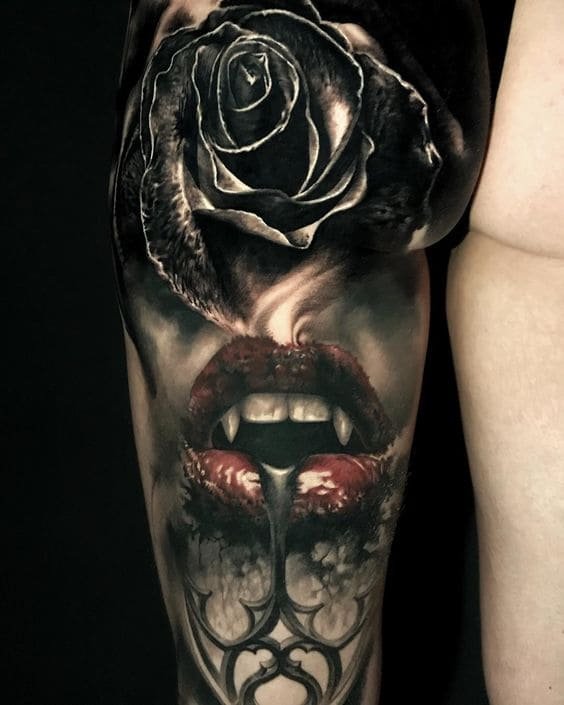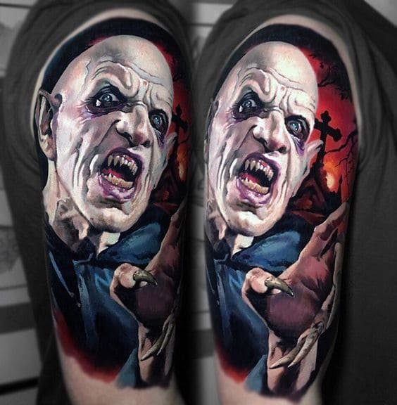 Татуировка с вампиром – это показатель интереса к мистике. Человек с таким тату, хоть и понимая нереальность персонажа на собственном теле, более податлив в теме мистики и фантастики. Он более податлив в таких популярных на сегодняшний день темах, которые включают в себе несколько различных характеристик: