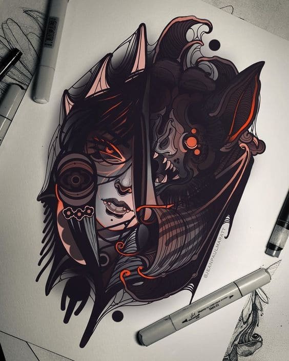 Мы поможем сделать уникальным тату и создать эскиз вампир в наиболее приемлемом для Вас варианте. Также будет удобным и подбор стиля с тату мастером.