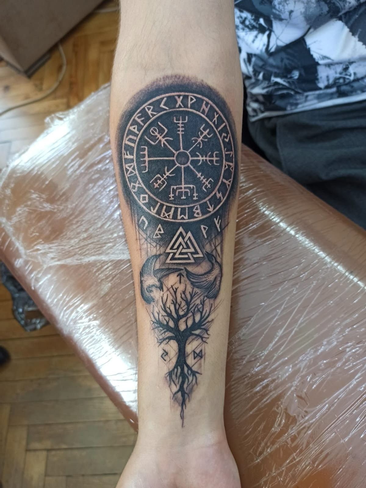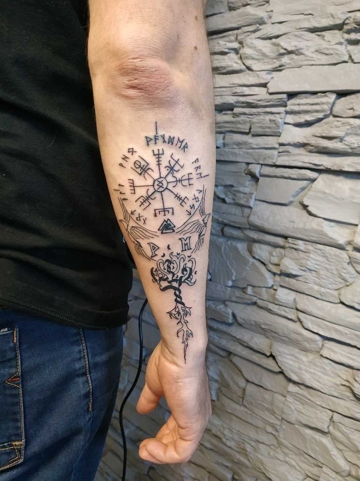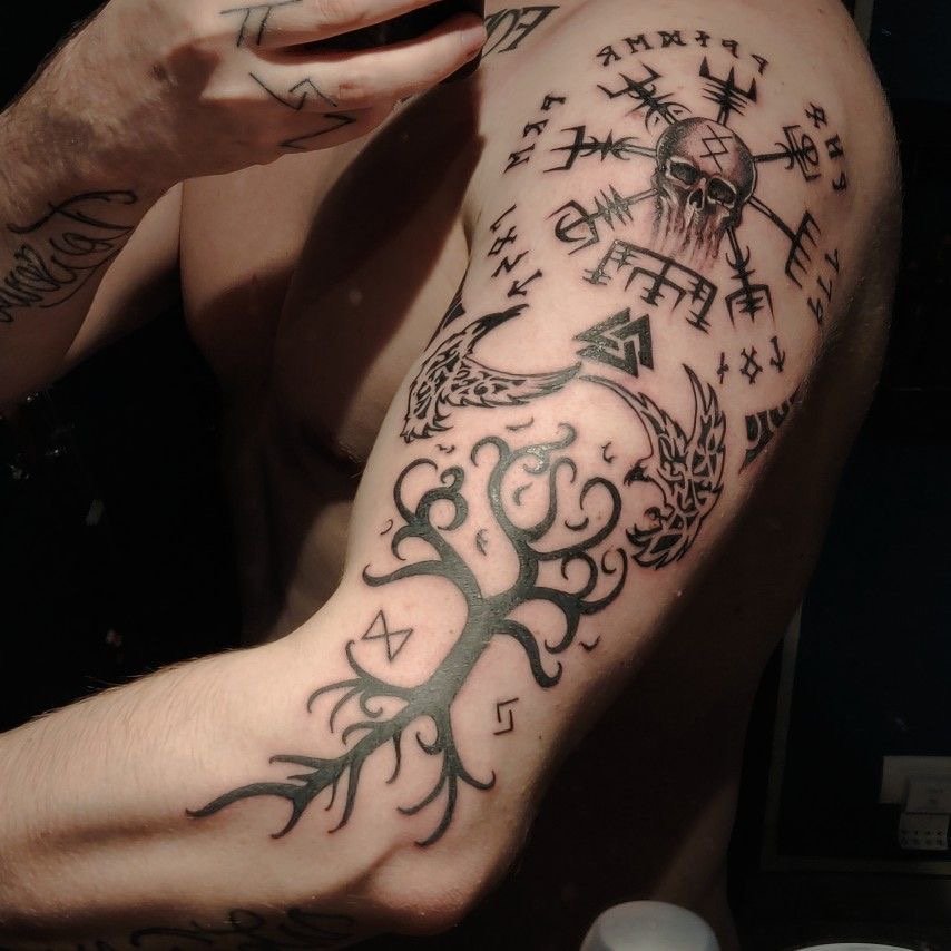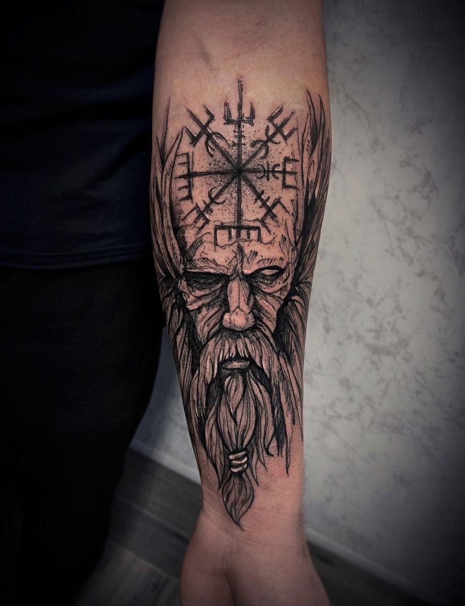 Татуировка с Вегвизиром – это не просто стильное изображение, а мощный магический элемент, который несёт в себе глубокое значение.
