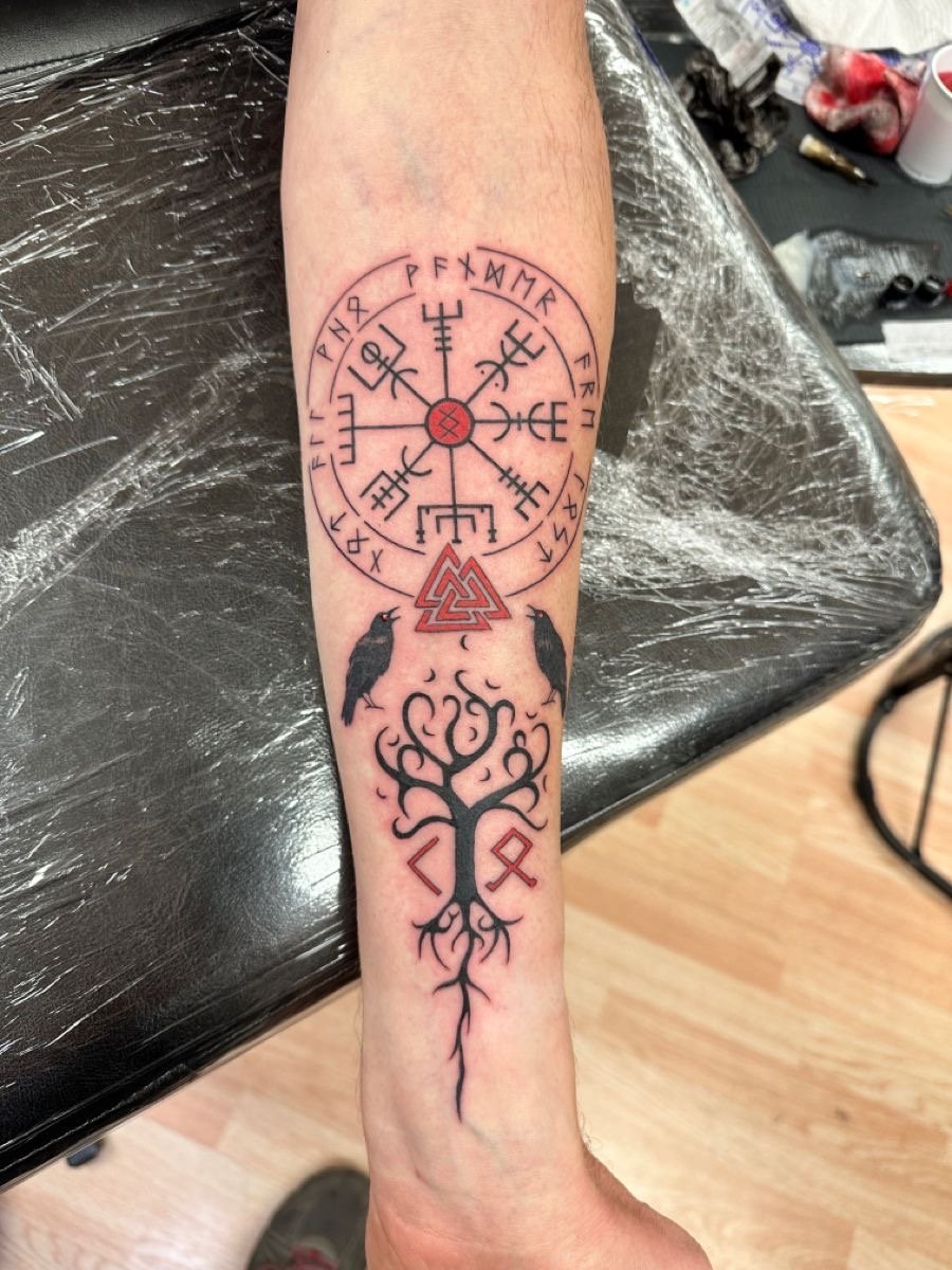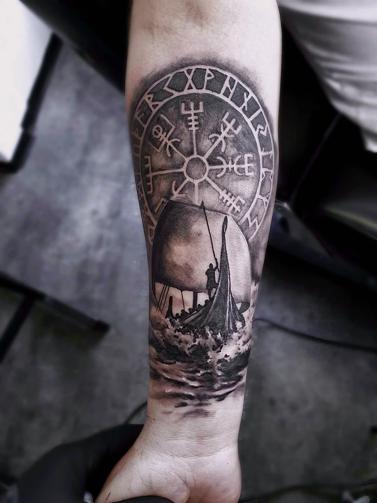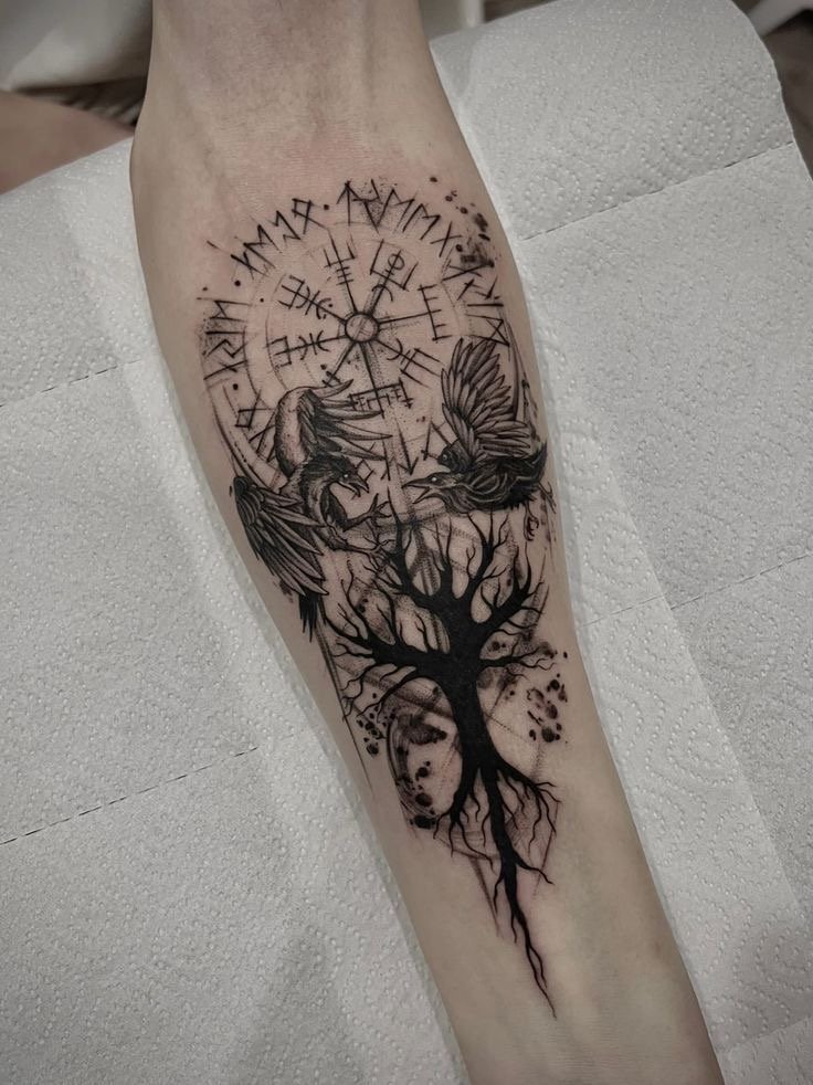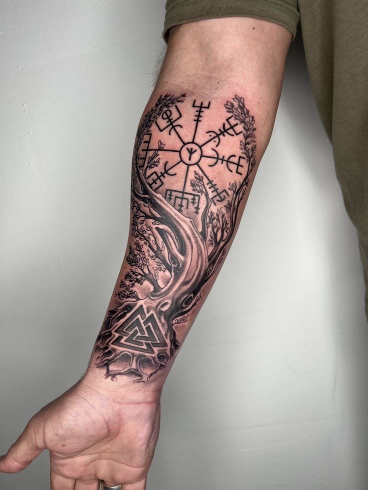 Татуировка с Вегвизиром – это не просто стильное изображение, а мощный магический элемент, который несёт в себе глубокое значение.