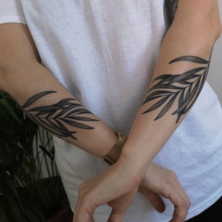Татуировки веток на руке выполняются в разных направлениях, что даёт простор для фантазии и самовыражения.