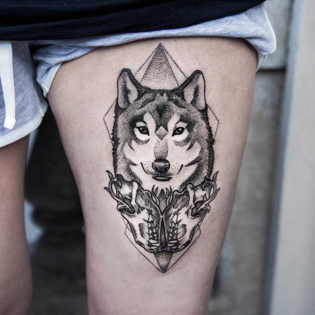 Мужчины чаще всего выбирают тату волка, чтобы подчеркнуть свою мудрость и решительность.