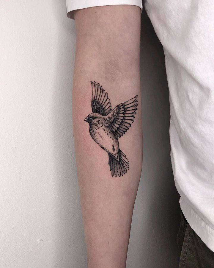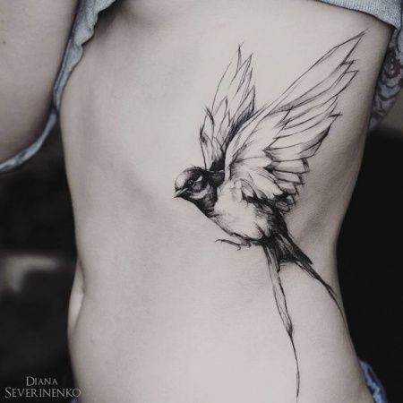 Трактовка тату воробья схожа по значению с любой птицей, которая имеет способность к полету.