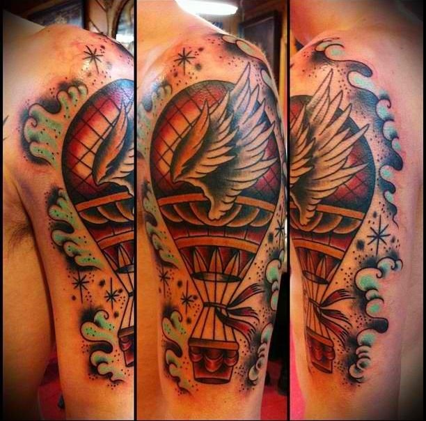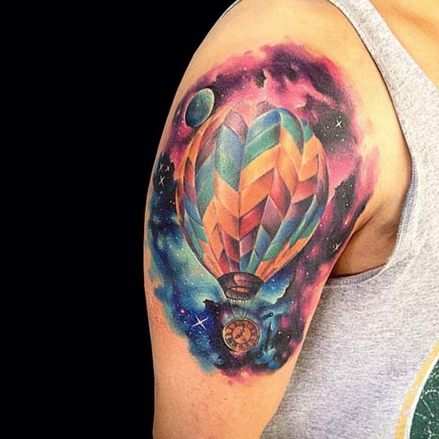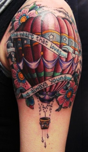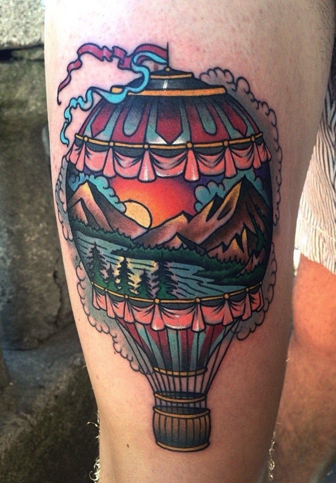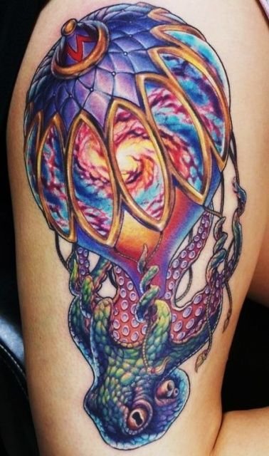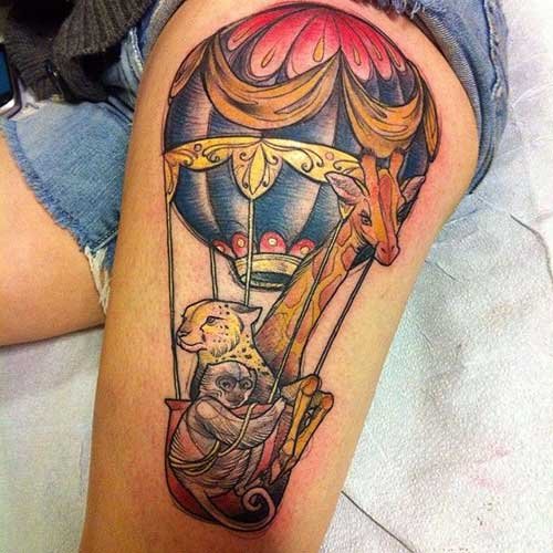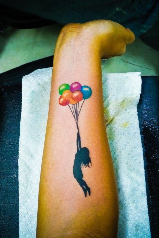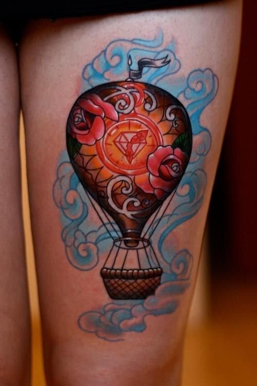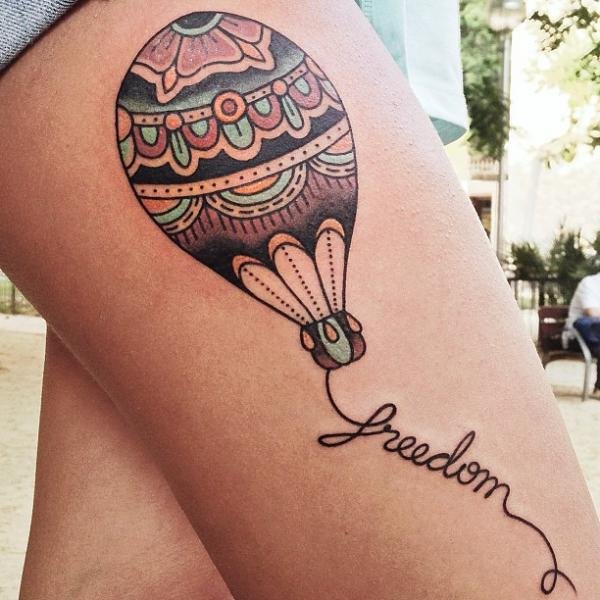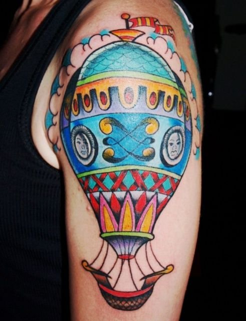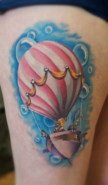 Часто обладатели нательных рисунков влаживают в них важную символику, либо же просто украшают ими тело, дополняют образ. Одной из самых популярных татуировок является изображение воздушного шара, которое говорит о легкости и свободе. По своей трактовке воздушный шар напоминает обозначение татуировок с птицами, которые привлекают своей свободой, независимостью и стремлением вверх к солнцу. Так как воздушные шары перемещаются с потоками ветра, зачастую такие татуировки говорят что их обладатель любит рисковать, и обладает тягой к путешествиям, его влекут неизведанные, новые края. Татуировки с изображением воздушного шара могут быть самыми разными, порой неожиданными, включая в себя дополнительные элементы (изображения животных, птиц, важной даты и прочие). В основном воздушный шар исполняется в красочных, ярких цветовых тонах, дабы придать татуировке наиболее оптимистичный характер.