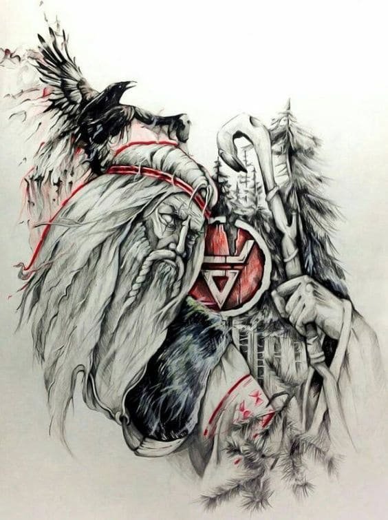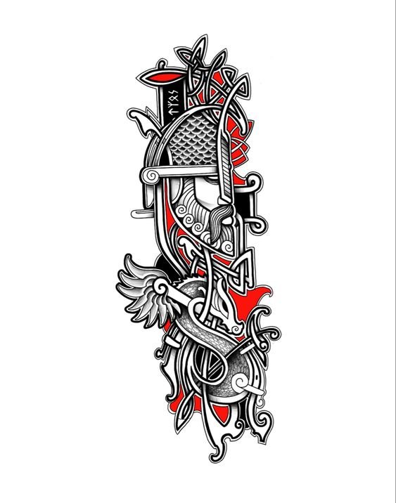 - Традиционные скандинавские татуировки - это изображения богов, и представителей животного мира. Так же, можно встретить изображения похожие с тематикой викингов, к примеру: изображение плывущего корабля, наполненного великими воинами.