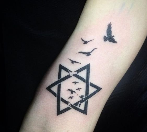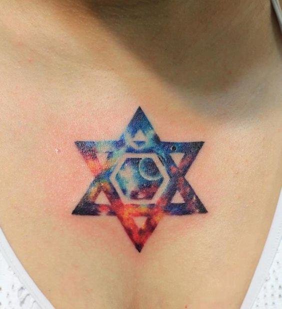 Бытует мнение, будто гексаграмма - это знак принадлежащий общине Евреев, но это не совсем так. Звезда Давида действительно является знаком данной общины, но помимо этого, данный символ встречается во множествах религий, в различных видах. В давние времена такой знак носить на своем теле могли лишь монахи и жрецы, таким образом они демонстрировали свою связь с Богом. Если же кто-то осмелится без разрешения обзавестись таким рисунком самовольно - это приравнивалось к богохульству и наглости.
