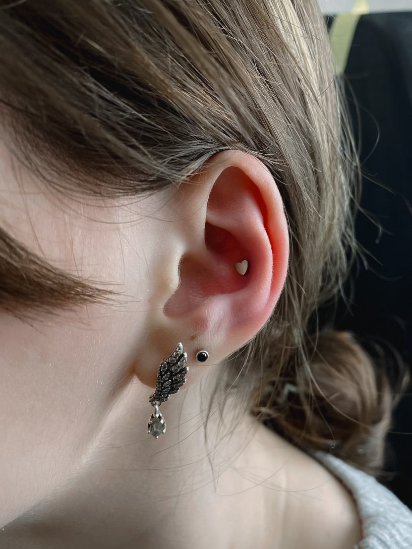 Больше всего мне нравится работать с такими видами пирсинга как: хеликс, конч, пуп и трагус.