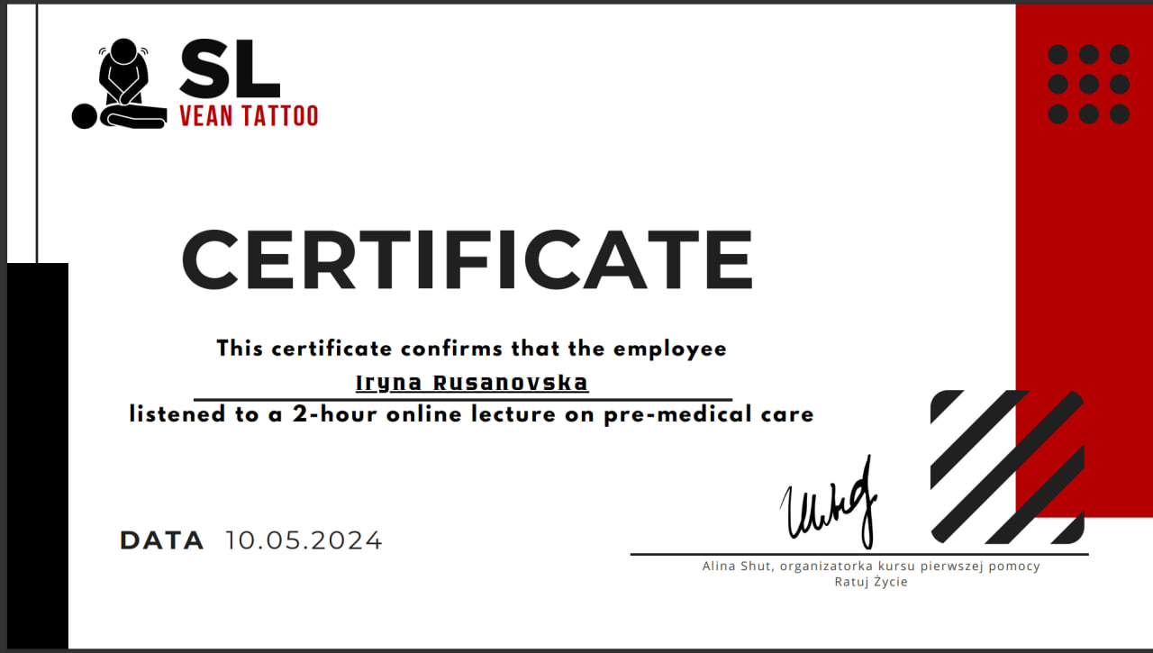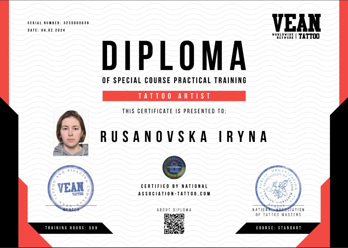Предпочитаю такие стили как: trash polka, графика, old school, minimalizm, whip shading, ботаника. Интересовалась сферой тату уже давно, после получения диплома художника, сразу начала обучение на мастера тату.