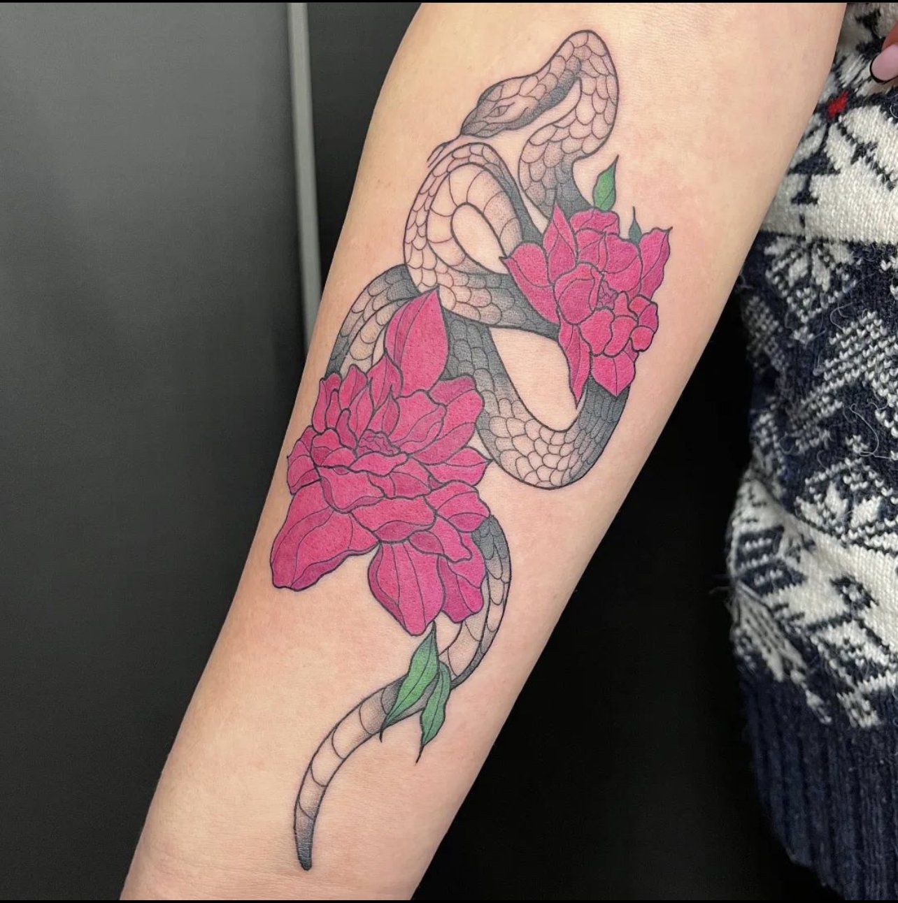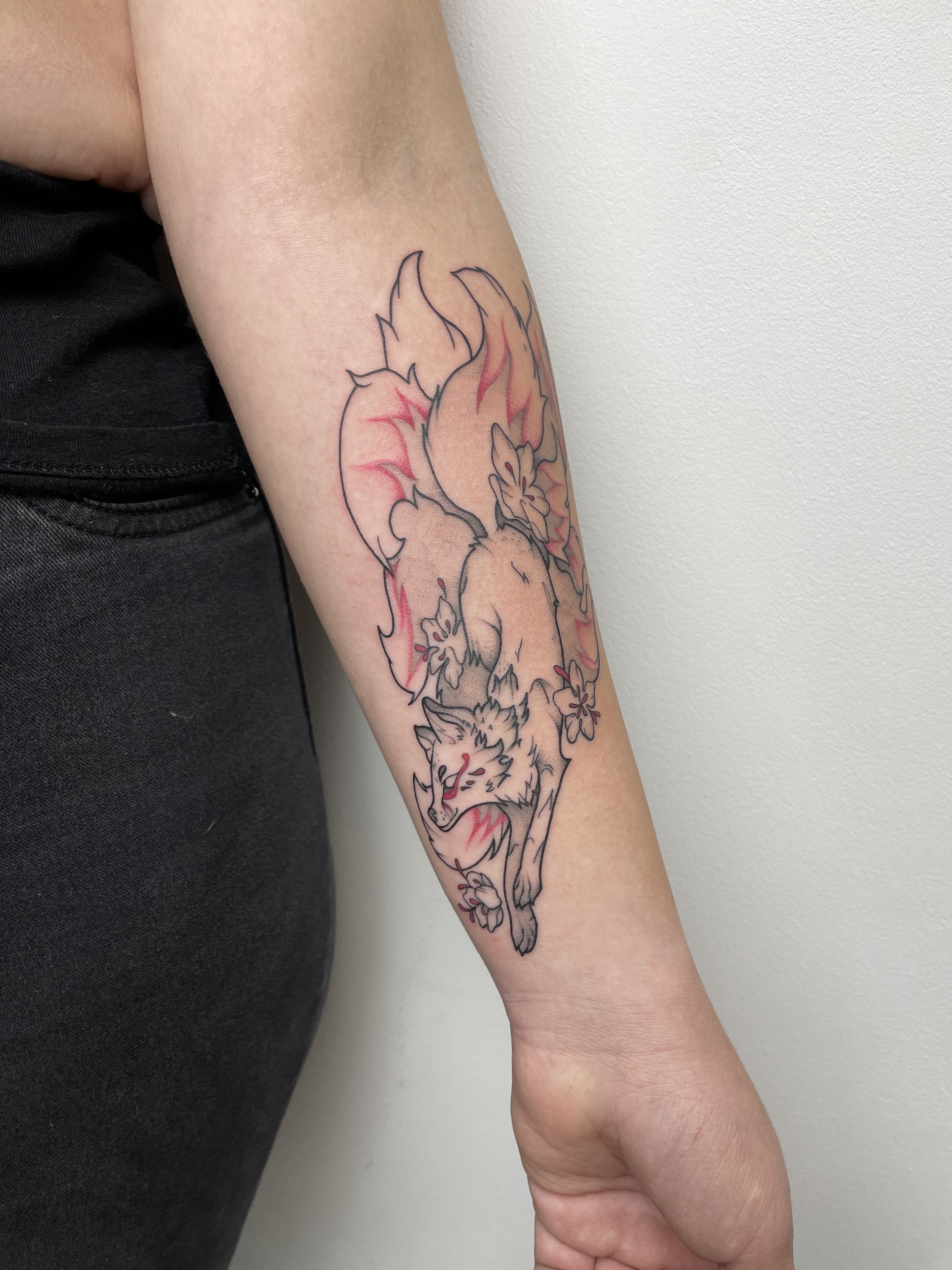 Начала работать и развиваться в тату-индустрии с 2021 года. Ну очень люблю стили: new school, графика, япония и традишнл.