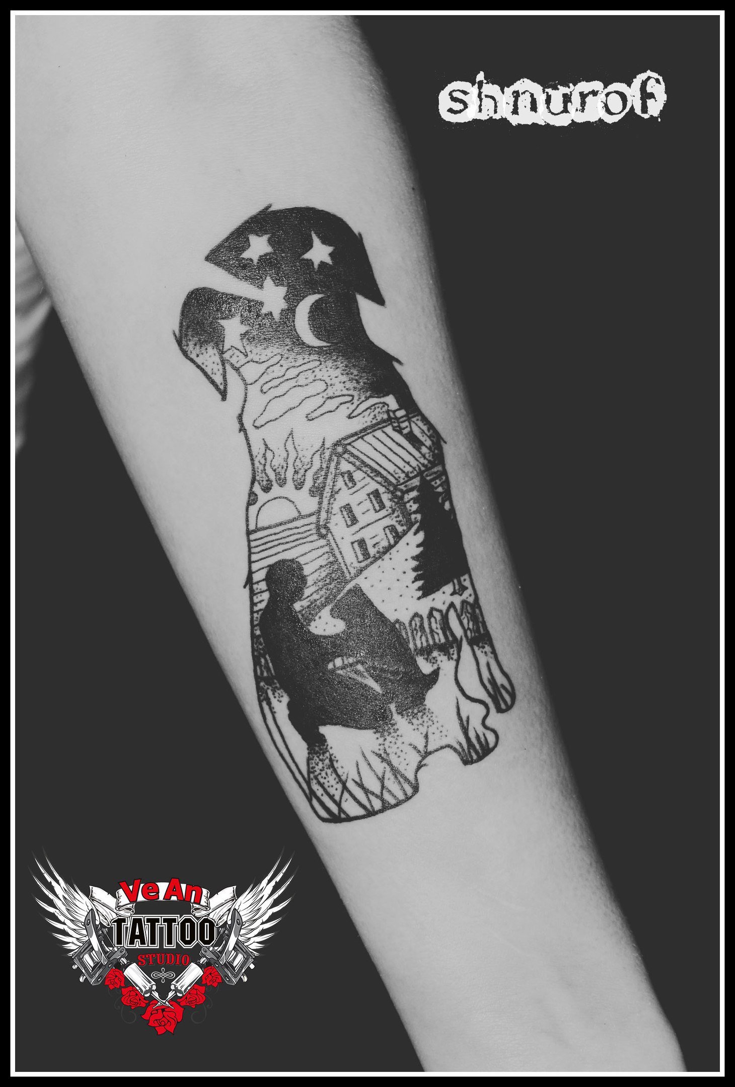 Скляренко Олег Владимирович (Шнуроф) 09.01.1986г. родился в г. Кривой Рог. Мастер художественной татуировки в любых стилях. Делаю людям больно с 2016г. Закончил школу искусств и ДГТУ. Свободное время провожу с друзьями. Умение рисовать и тяжелая музыка вдохновили меня попробовать делать татуировки. Работаю в студии VeAn с сентября 2017г. в г. Кривой Рог. Больше предпочитаю работать с цветными тату. У меня пока 1 тату, так как не могу подобрать себе эскизы. Желаю коллегам вдохновения и по больше клиентов с интересными идеями.