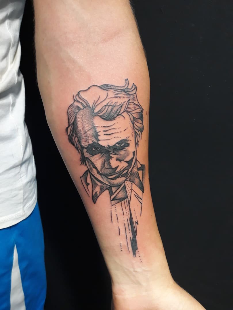 Антон Архипов. Родился 15.06.1990 года. В Мелитопольском салоне работаю с 25.06.2017. Имею 4 рабочие машинки ( но при переходе на модули отказался от большого автопарка). Занимаюсь тату с 2015 года. Предпочитаю тату в олдскуле, дотворке, ньюскуле, випшейдинге. Хочу выразить благодарность друзьям – которые меня попросили заняться тату и родителям, которые меня в этом поддержали. Коллегам желаю быть более мур-мур