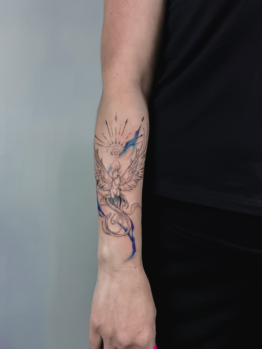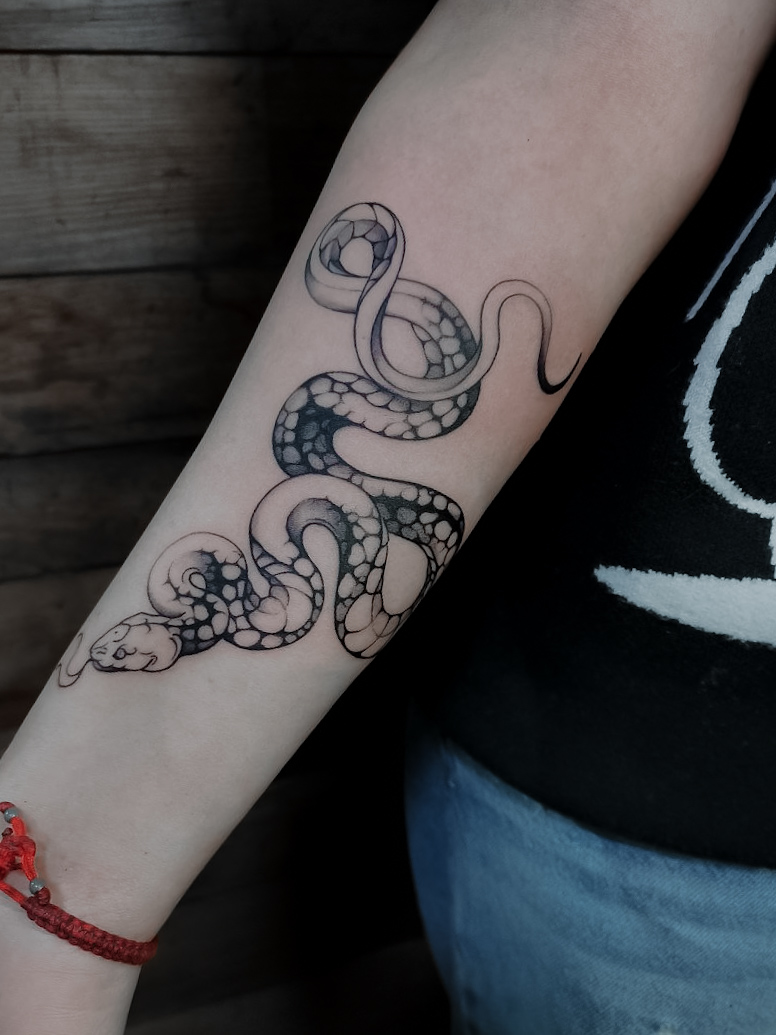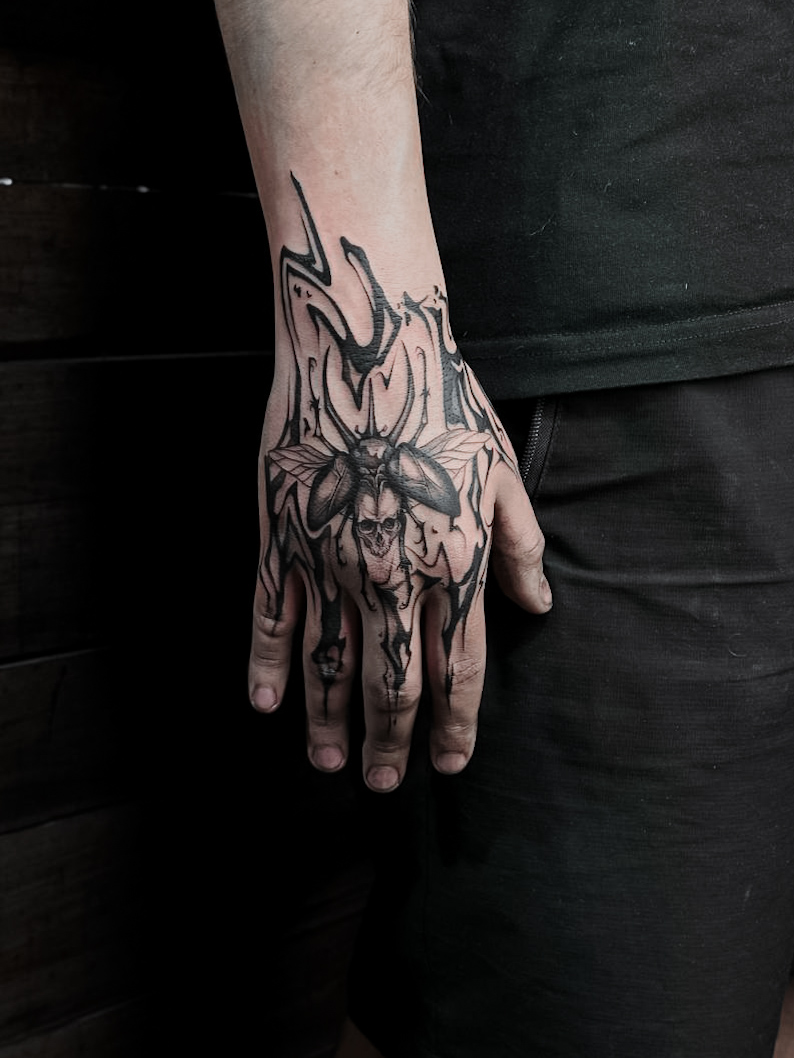 Я специализируюсь на таких стилях, как маленькая татуировка, гравюра, минимализм, лайнворк, каллиграфия, трайбл, випшейдинг, традишнл, блэкворк, акварель, графика, абстракция, фрихенд и чикано.