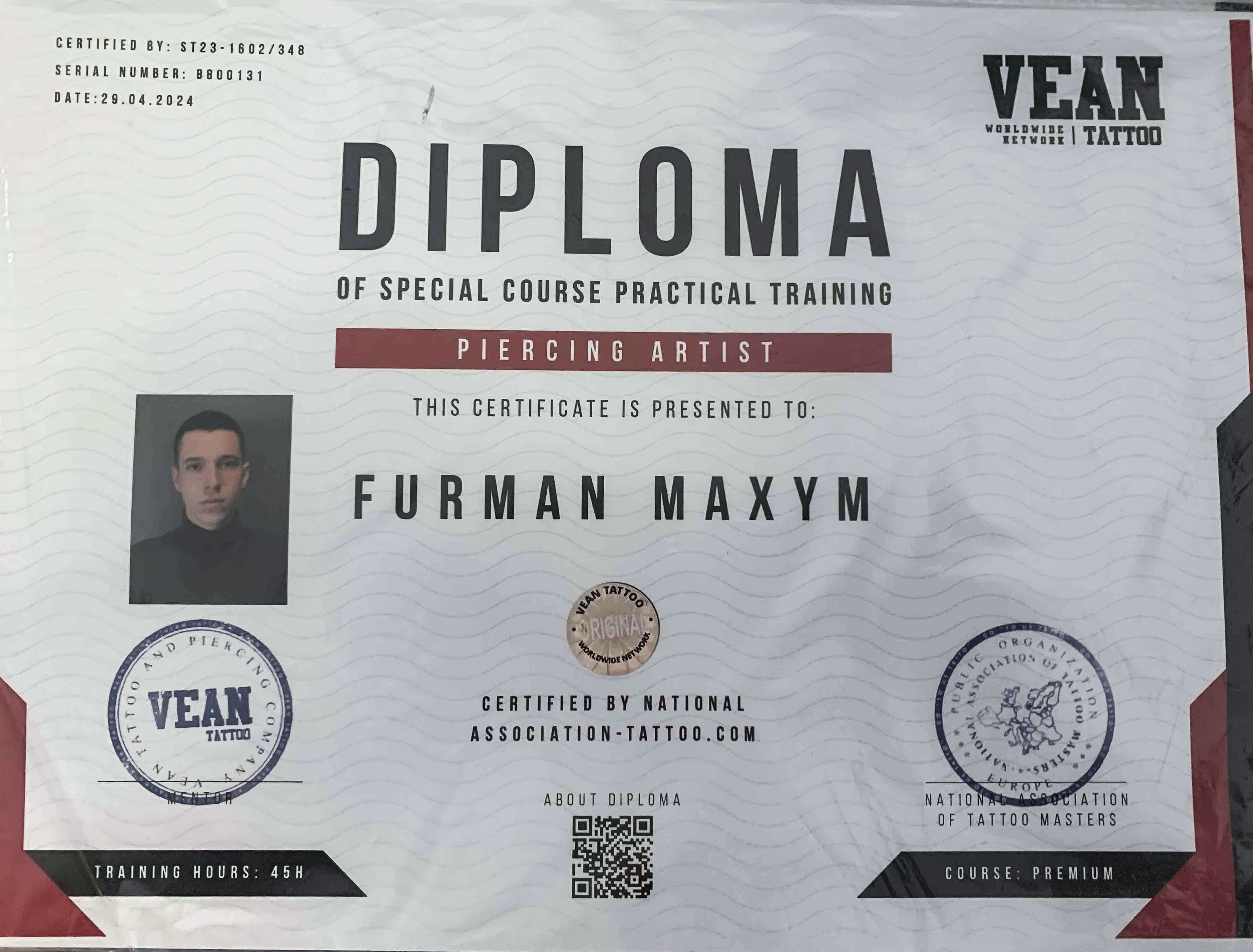 Привет, я Максим - мастер пирсинга и удаления тату, человек который любит чтобы все было идеально, а так же который очень любит свое дело. Записывайтесь ко мне на пирсинг и удаление тату, и все у вас будет идеально.