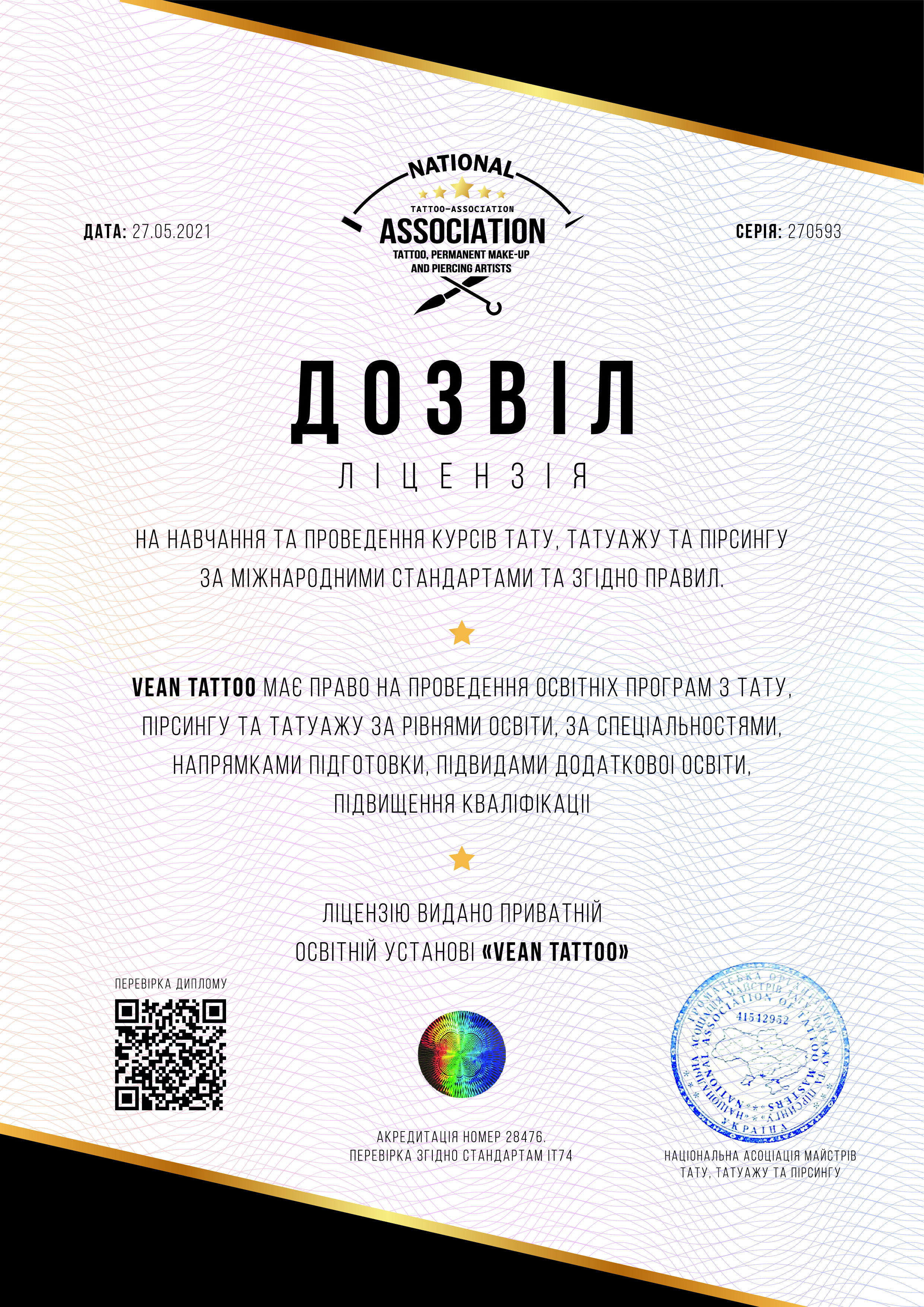 С каждым днем растет и количество желающих украсить свое тело подобным образом. Сфера тату очень увлекательна, полна творчества, ярких эмоций и новых знакомств. Не стоит так же забывать о самой профессии мастера тату. Татуировщики имеют гибкий график, а так же достойную заработную плату. К тому же, тату-мастер сегодня очень престижная и востребованная профессия. На ряду с желающими украсить свое тело с помощью тату, есть множество людей желающих самим овладеть данной профессией. Если Вы ищите где возможно пройти обучение тату в Украине - сеть тату салонов "VeAn" предоставляет всем такую возможность. Если Вы творческая личность, любите общение с людьми и интересуетесь сферой тату - команда "VeAn" с радостью поделится своими знаниями и умениями и превратит Вас в квалифицированного тату мастера.
