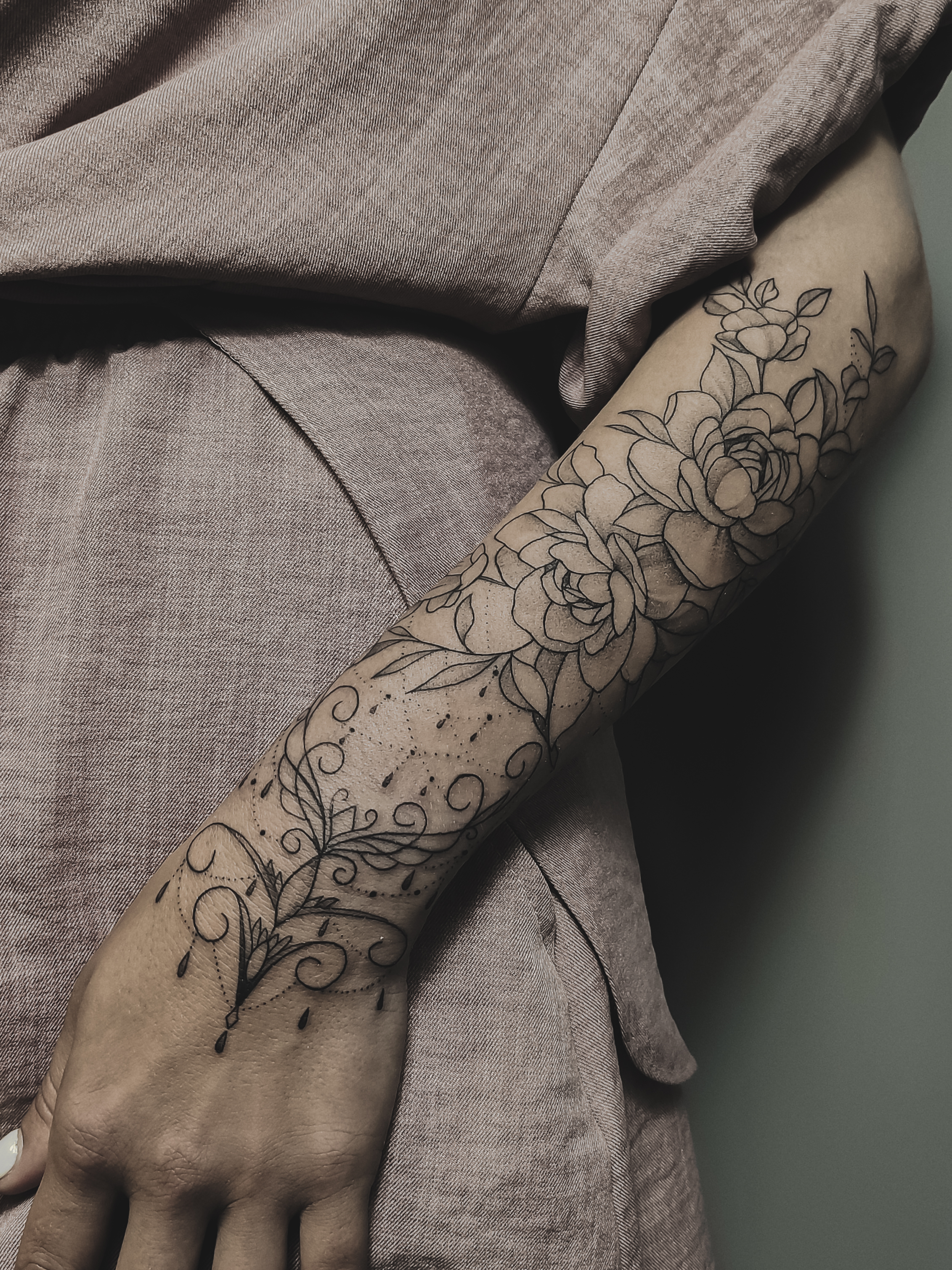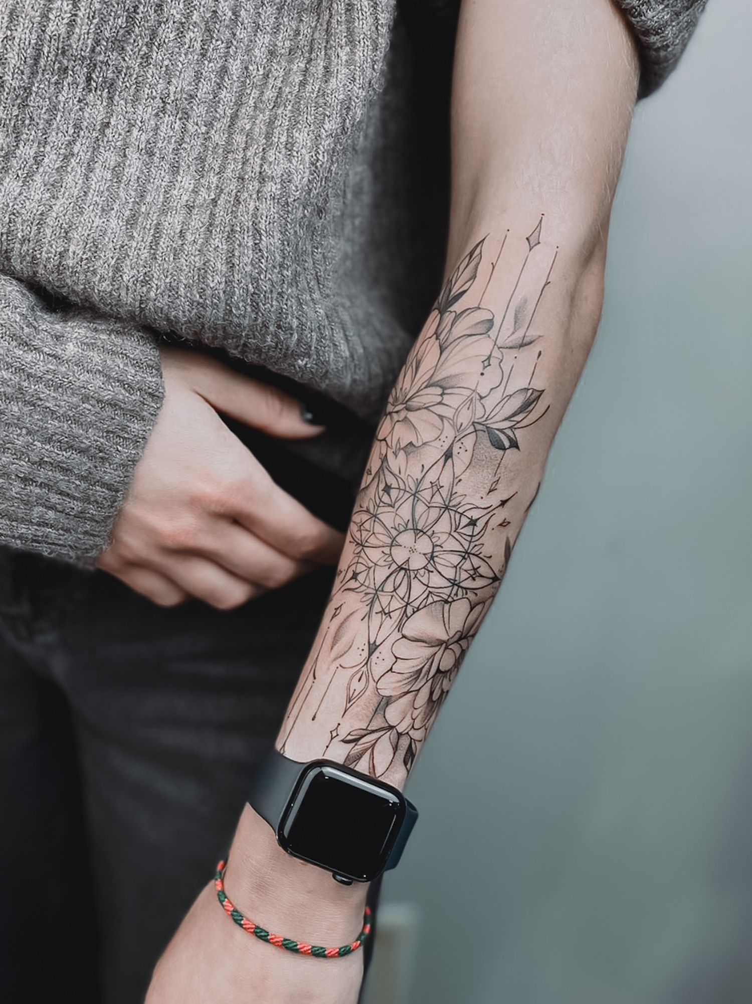 #Тату на руці #Квіти #Татуювання #Лайнворк