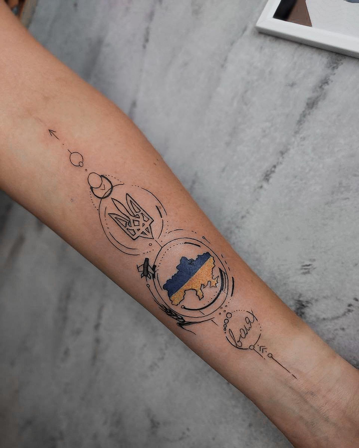 При створенні ескізу татуювання з географічними контурами нашої країни не можна використовувати негативну символіку. Клієнти студії VEAN виявляють бажання щодо розробки композицій з додаванням патріотичних елементів (герб, булава, калина тощо), також використовують координати, написи.