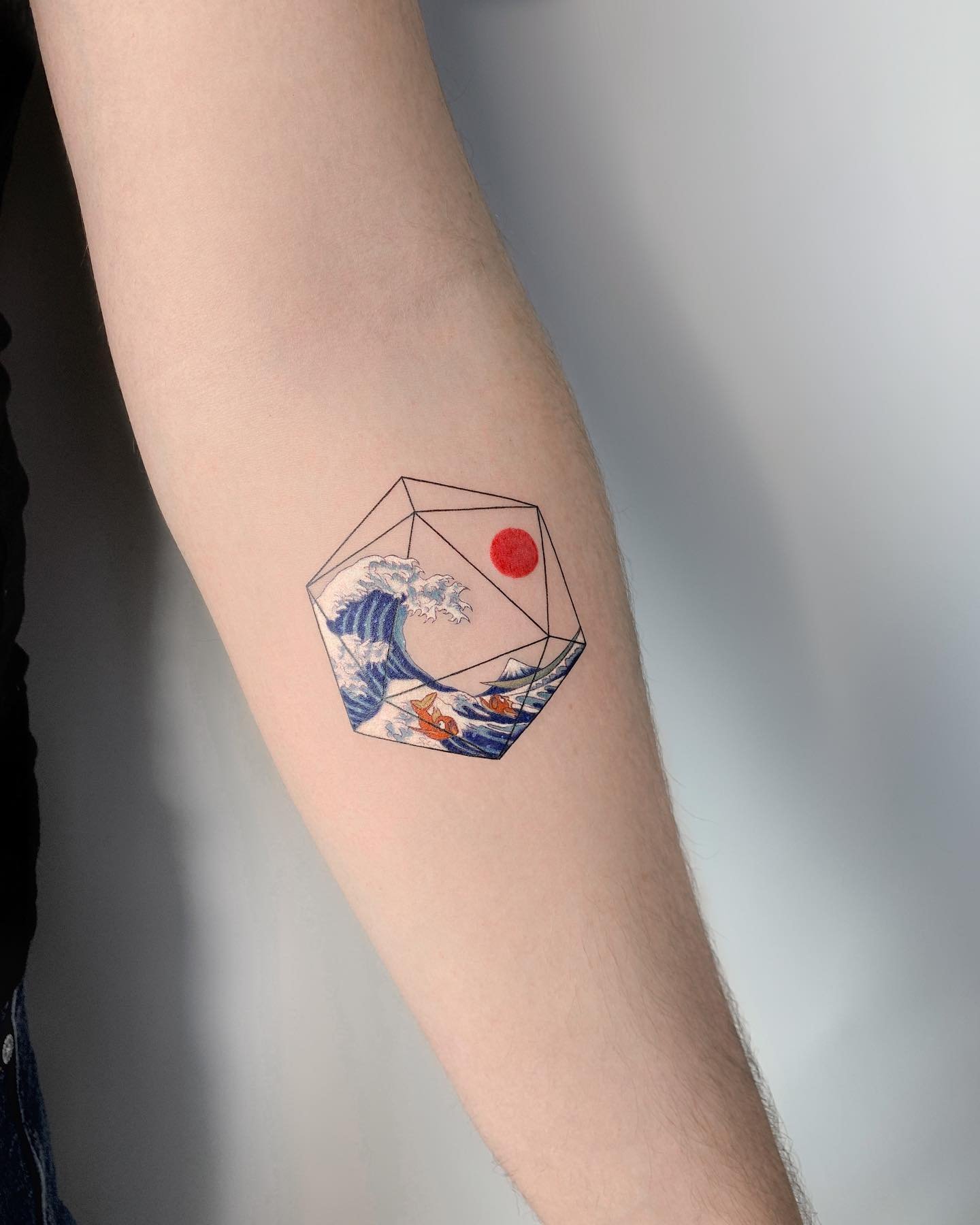 - Цей стиль може мати щось спільне з файнлайном, але в цьому напрямку лінії набагато товстіші і яскравіші, а візерунки завжди симетричні. Дизайн геометричного татуювання може містити зображення навколо якого будуються геометричні візерунки. Таким чином, фокус буде сконцентрований на зображенні.
