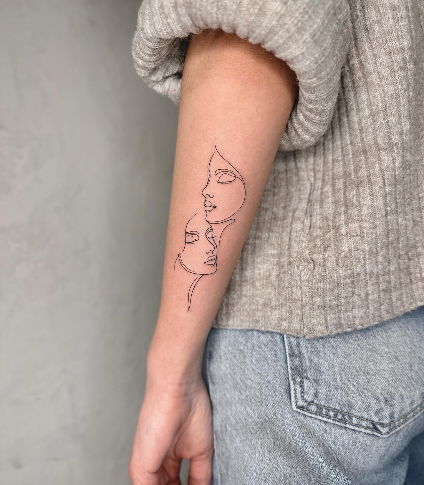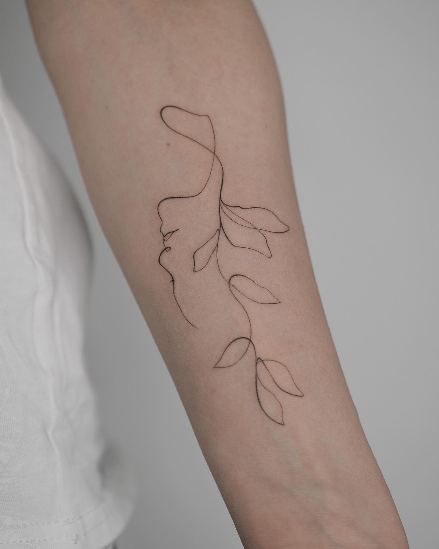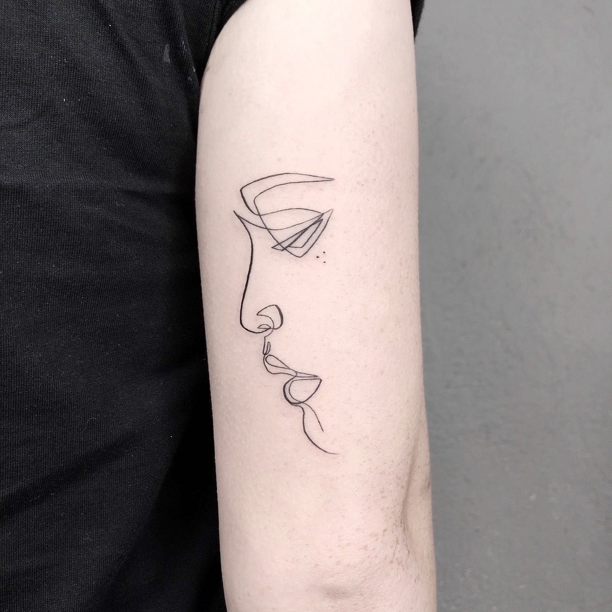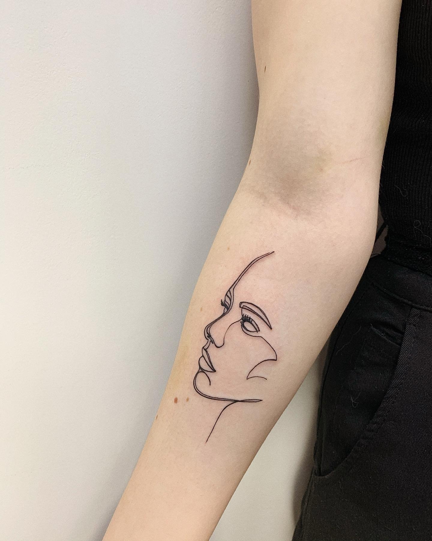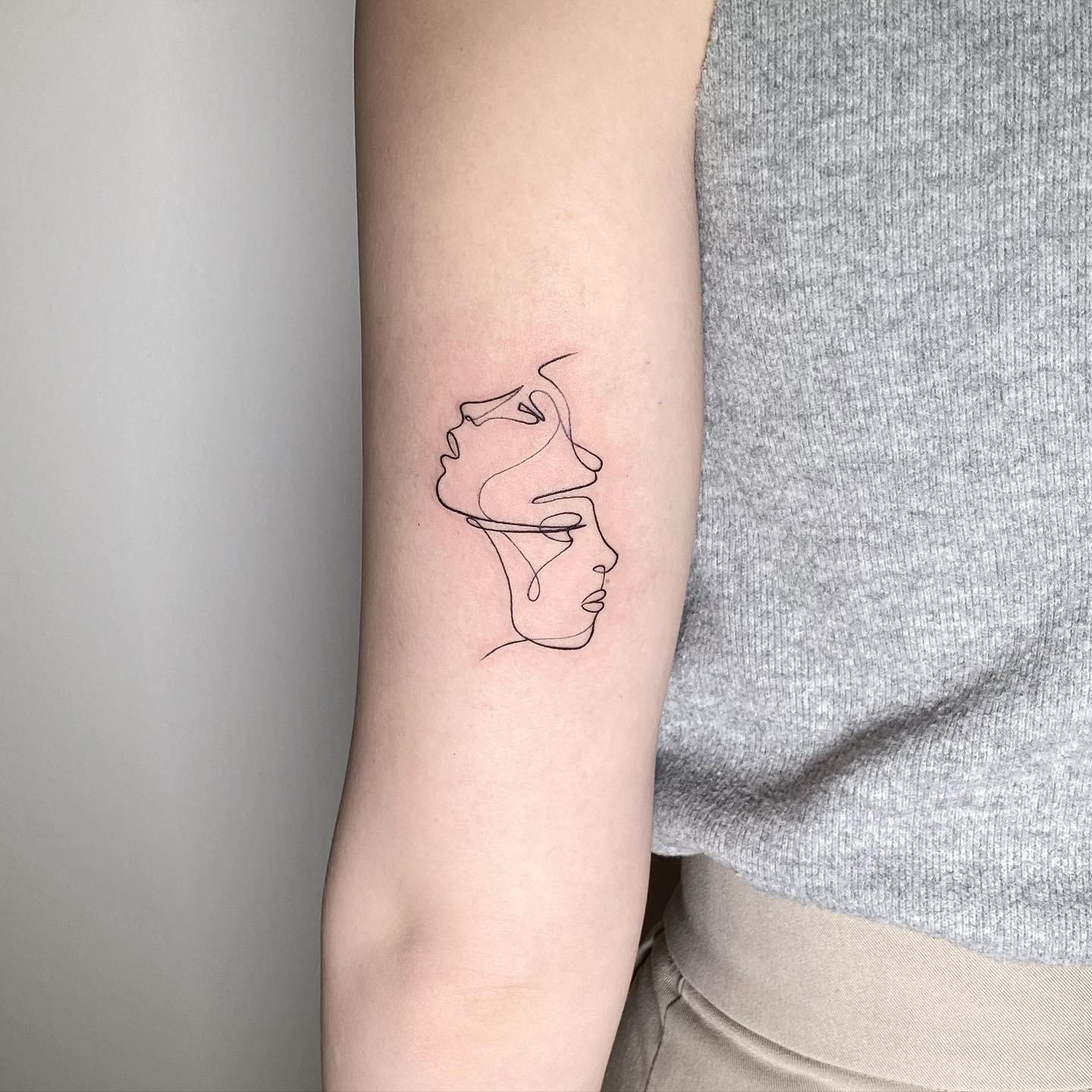- Витончені профілі людей, створені однією лінією, виглядають сучасно й елегантно. Такі тату передають емоції або пов’язуються із близькими людьми.