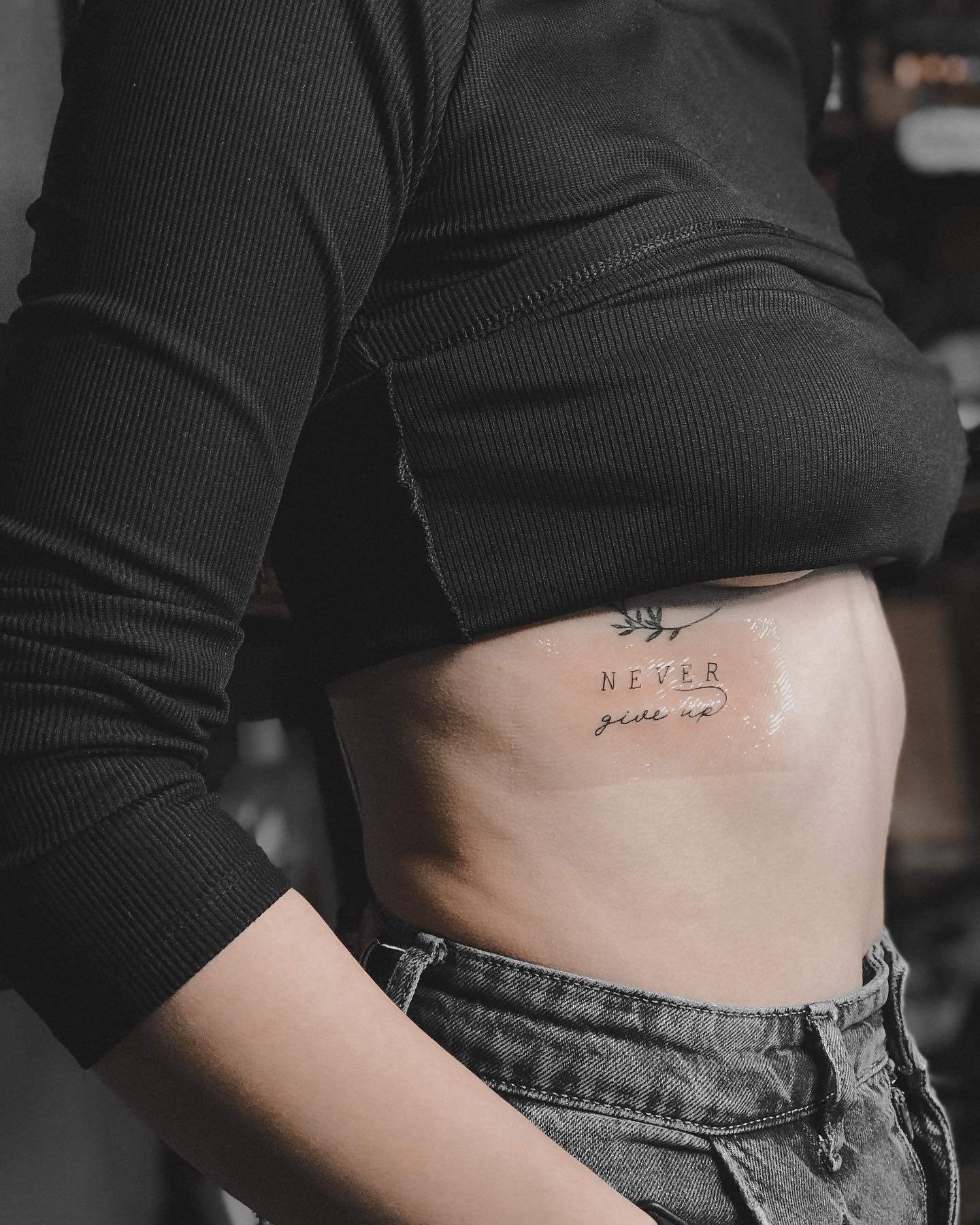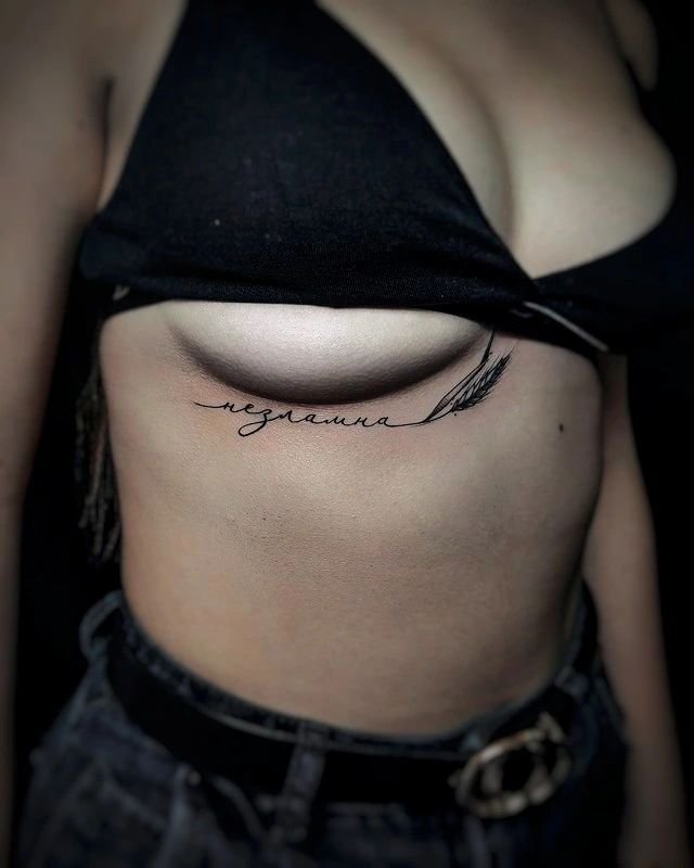 При виборі ескізу та шрифту, звертайте увагу не лише на зміст татуювання, але й на ваші анатомічні особливості. Наприклад, тендітним дівчатам не варто обирати грубі готичні шрифти. Найкращий варіант - це класичні або ретро-шрифти. Що стосується кольору, то окрім чорно-білої гами, можна спробувати пограти з кольоровою палітрою.