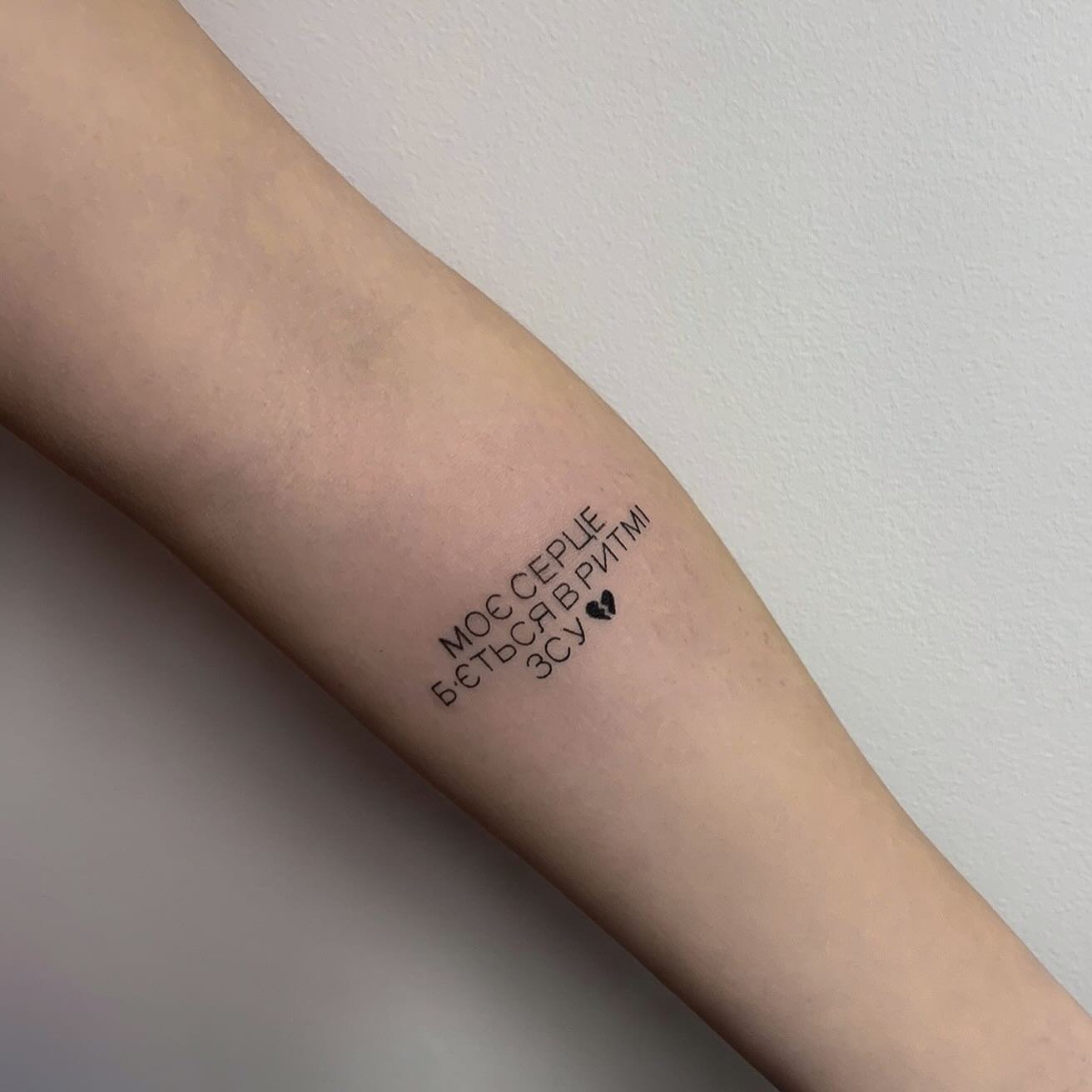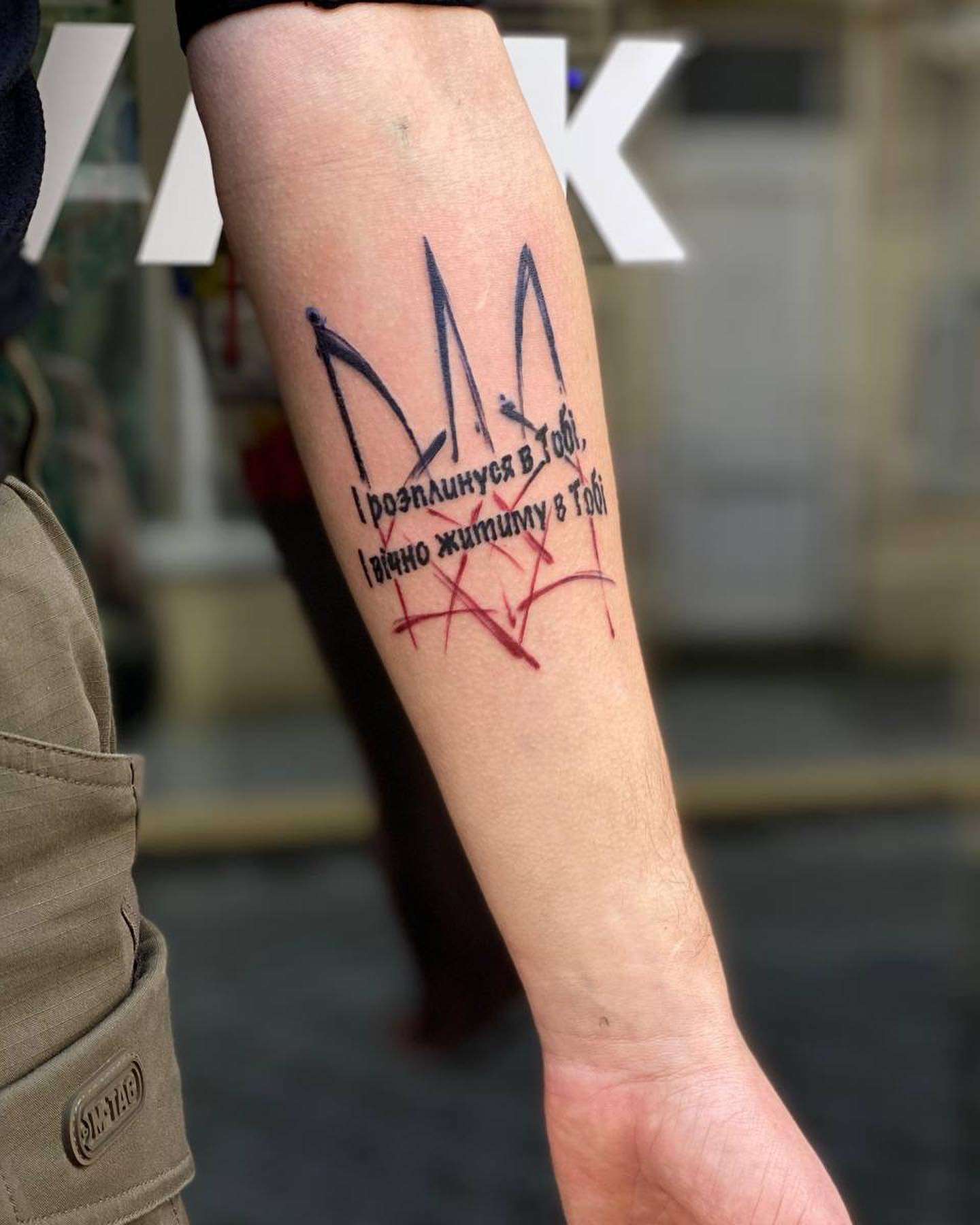 Патріотичні тату-написи - це спосіб самовираження. Ми допоможемо вам виразити усю силу почуттів до батьківщини в найкращому варіанті боді-арт прояву. З нами вам буде безпечно та цікаво. Кожний етап взаємодії майстра та клієнта - це творчий процес з дотриманням санітарно-епідеміологічних норм. Ми зробимо усе можливе, аби ви почували себе комфортно, позбулися тривоги та не відчували больових симптомів. Для реабілітаційного періоду вам запропонують спеціальні засоби для догляду за шкірою, з котрими процес регенерації відбудеться значно швидше. І, вже в найближчому майбутньому, ви зможете насолоджуватися власним унікальним патріотичним тату-написом.