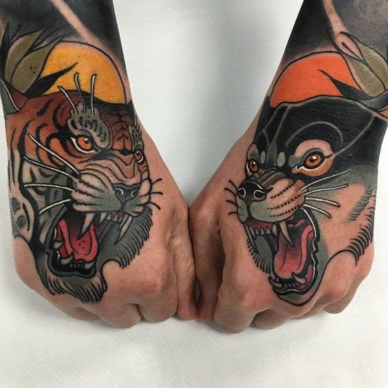 - Тварини - чоловічим тату властиві зображення хижих звірів. Часто це леви, тигри, вовки. Хижаки не завжди символ небезпеки, дуже часто таке татуювання відображає певні риси характеру, які приписують тварині.