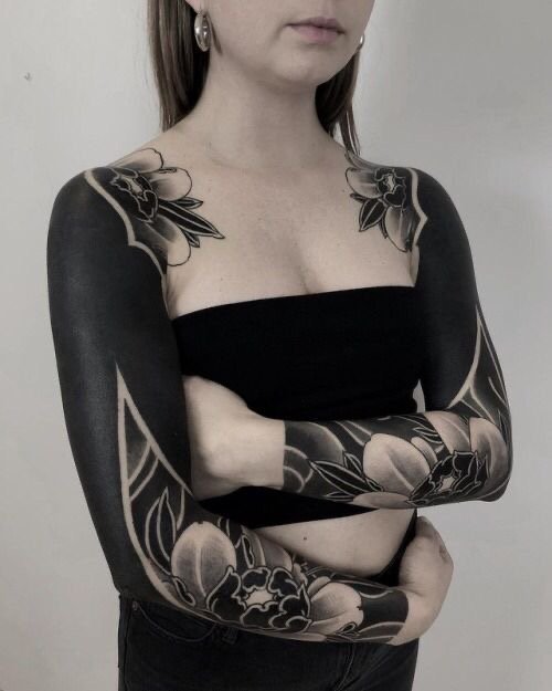 - Блекворк - тату, що не залишає не промальованого простору, зазвичай всі місця без малюнка промальовують чорним;