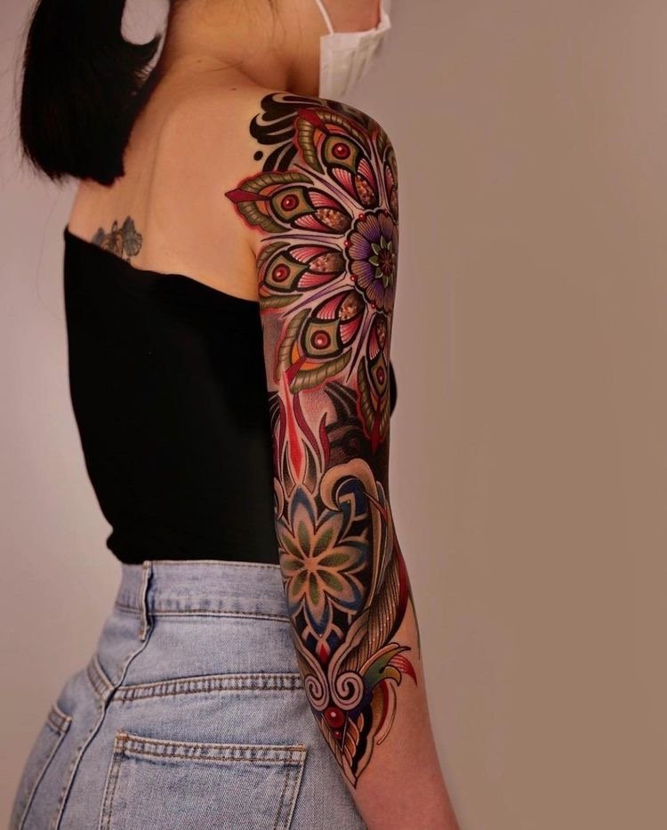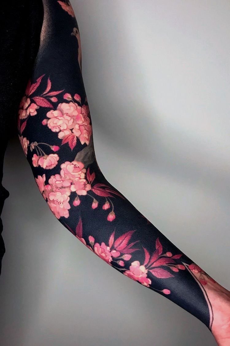 Існує два способи зробити тату рукав: створити повний ескіз відразу і нанести все зображення або поступово об'єднати кілька малюнків в один, додавши загальну сюжетну лінію.