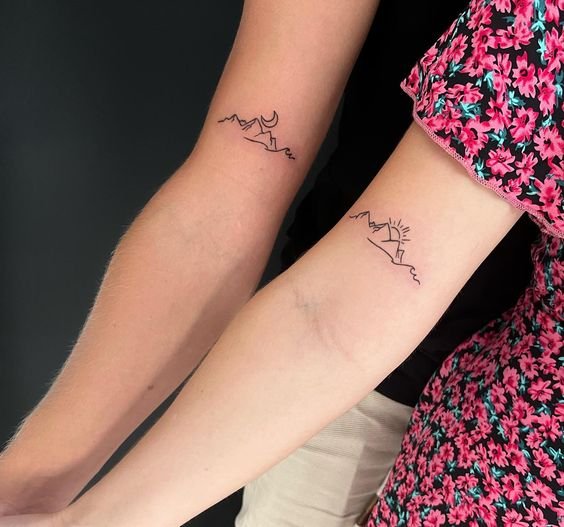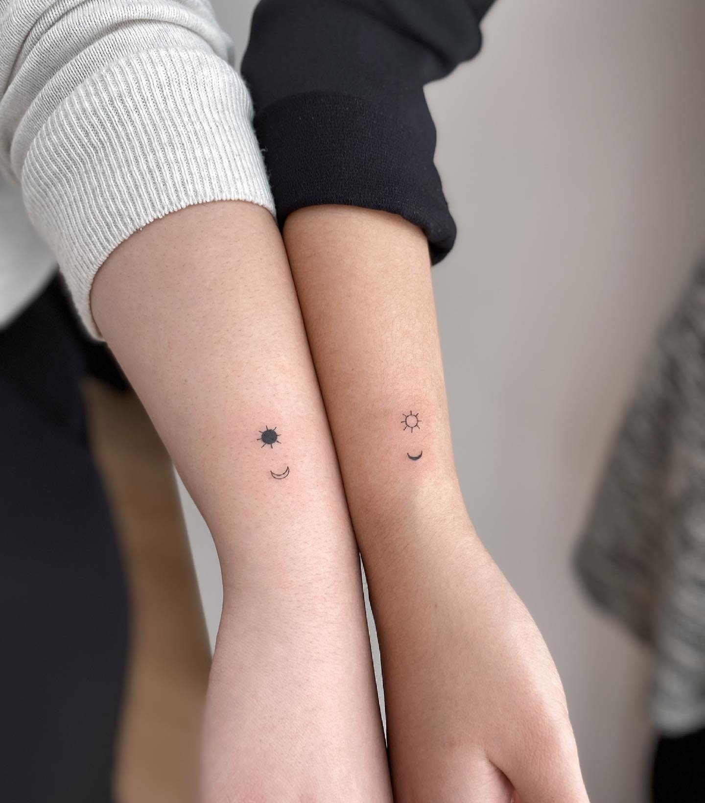 - Сонце і Місяць - два небесних тіла, які існують у гармонії, незважаючи на свої відмінності. Такі татуювання символізують доповнення, взаєморозуміння і гармонію в стосунках між подругами.