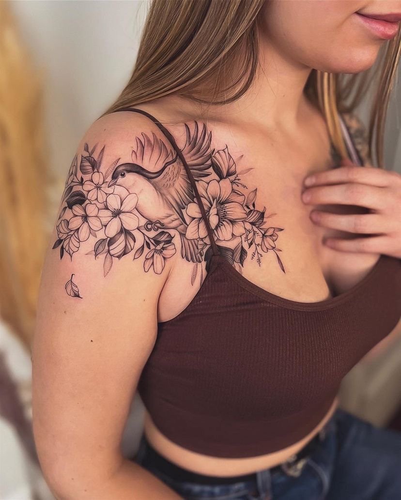 Серед жінок особливо затребувані тату на плечах: жіночі дизайни дозволяють створювати як ніжні, так і яскраві образи, підкреслюючи індивідуальність і стиль.