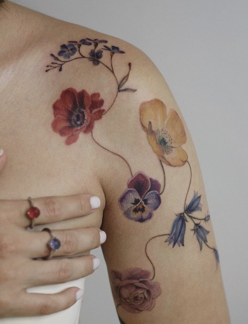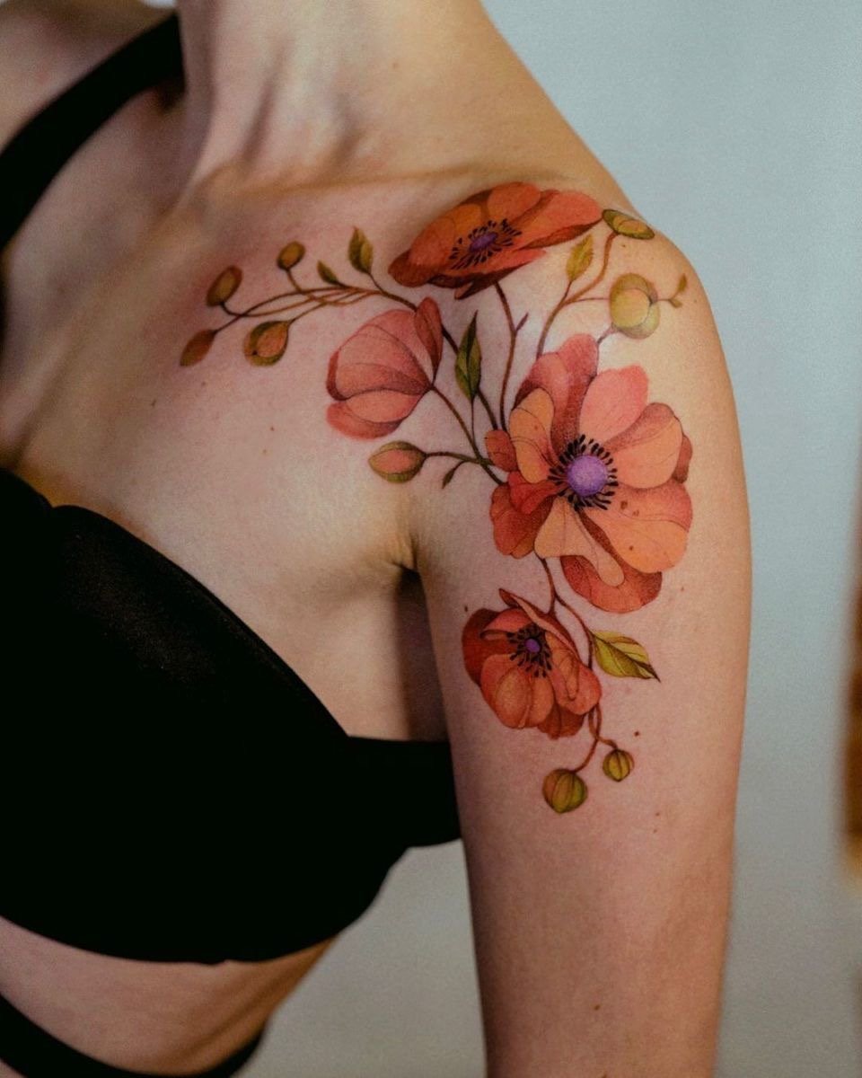 Квіткові композиції дозволяють підкреслити вигини тіла й створити гармонійний акцент. Вони можуть бути виконані в найрізноманітніших стилях: від яскравих акварельних деталей до витонченого мінімалізму, що підкреслює елегантність. Жіночі тату з квітами на плечі – це поєднання естетики, символізму й індивідуальності, які роблять зовнішній вигляд по-справжньому унікальним.