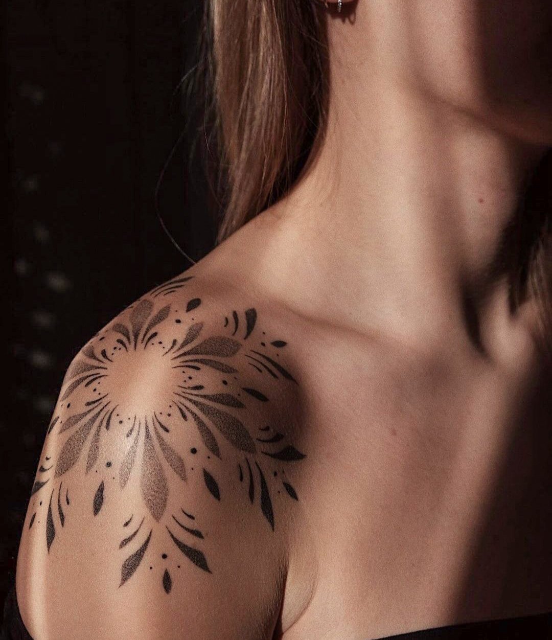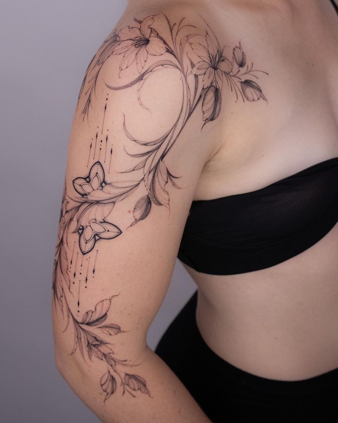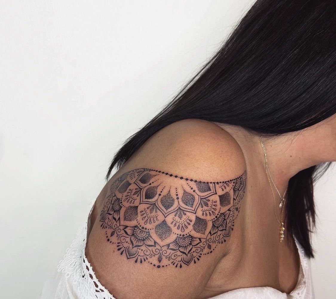 Важливо враховувати, як візерунок поєднуватиметься з лініями тіла й загальним виглядом татуювання. Плече – чудове місце для таких малюнків, оскільки дозволяє підкреслити його вигини й створити виразний акцент.