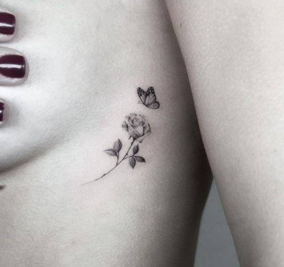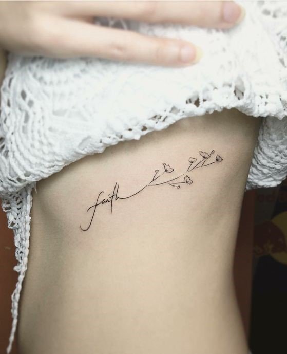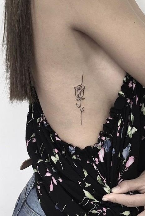 Особливою популярністю користуються цитати і фрази, які відображають настрій і світогляд власниці. Завдяки малому розміру та чорному кольору, написи на бічній частині грудної клітки мають лаконічний і стильний вигляд. У процесі нанесення татуювання вам не доведеться зіткнутися з інтенсивними больовими відчуттями, як під час виконання кольорових і великих натільних малюнків. Варіанти мінімалістичного дизайну включають зірки, місяць і серце, бутони квітів, символи нескінченності й удачі.