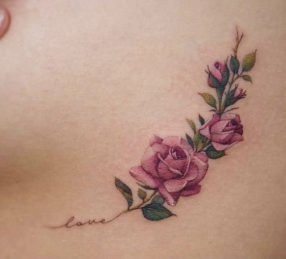 - Троянда. Символ любові та краси, внутрішньої гармонії та прагнення до досконалості. Залежно від кольору троянди розширюється значення натільного малюнка.
